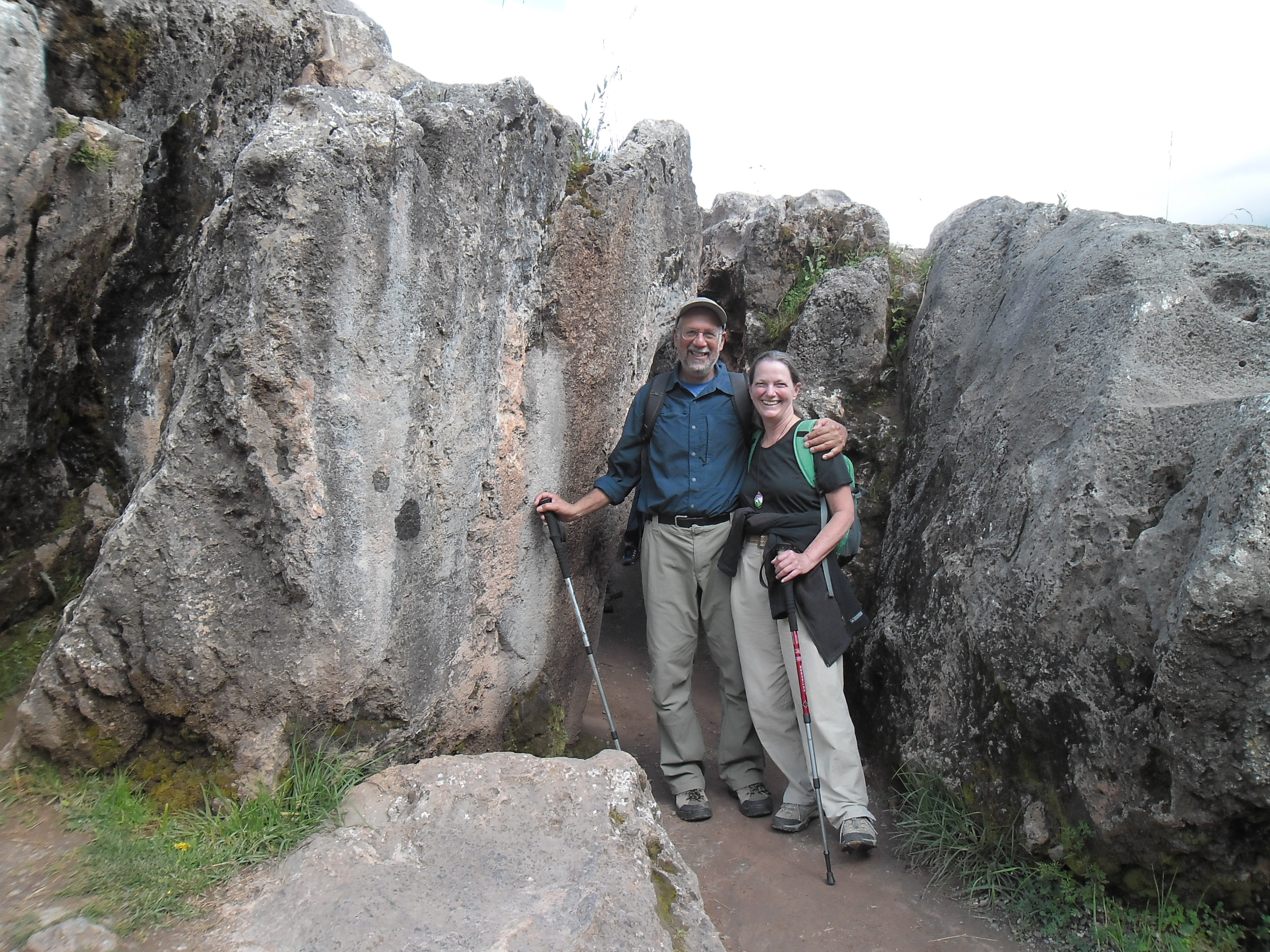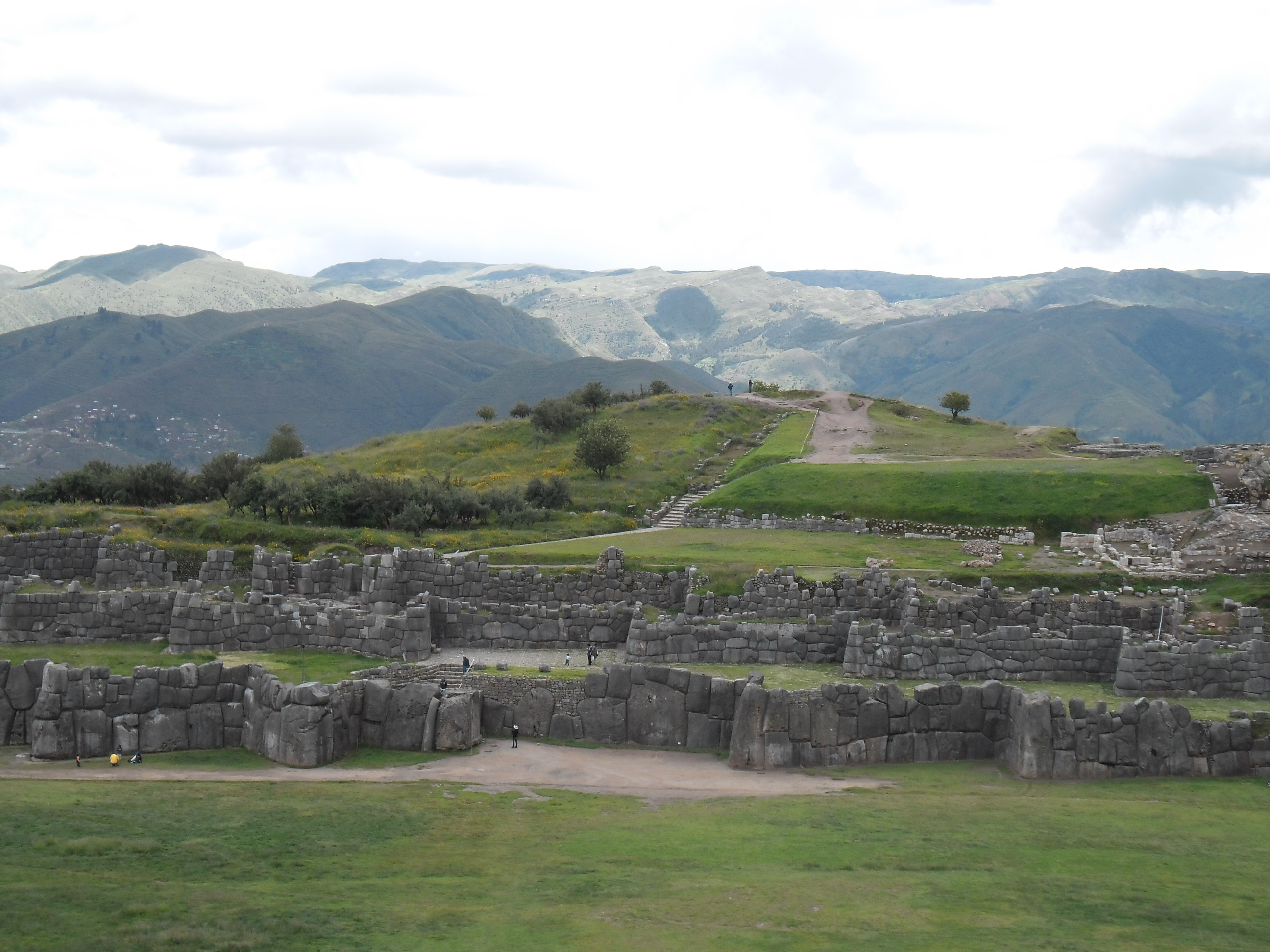 One day, we left our hotel in Cusco and walked up to some Inca ruins just out of town. The ruins are of a fortress and settlement called Sacsayhuamán. It is a huge area above Cusco, about 1,000 feet above the town. It was an important site for the Incas, a watchpoint for Cusco, the capital of the empire, and a place where families lived and crops were stored. Nowadays, it is a magnificent display of intricate masonry and planning that illustrates the advanced society that the Incas organized. Don’t be intimidated by the pronunciation of the site. Even when the local people talk about it, it sounds exactly like, Sexy Woman.