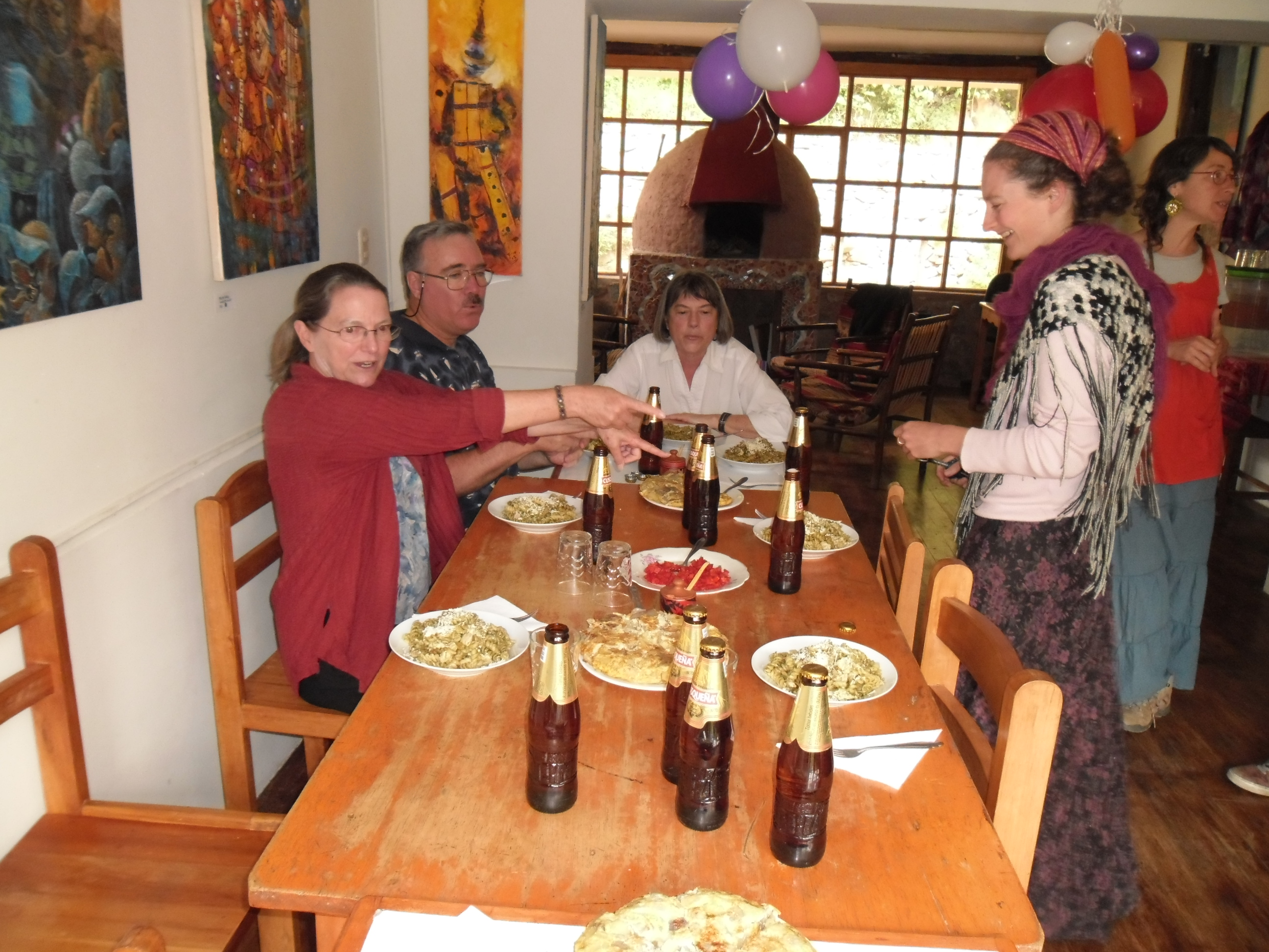 We loved working at Apu Lodge. We liked being part of this team, which was great not only at working together and getting things done, but also at having fun. Any excuse for a party was a good one. Carlos was working there when we arrived, but left halfway through our stay, to work at a bigger hotel, closer to his home in Urubamba. We had a party for his goaway, then a little party for Mike´s birthday.