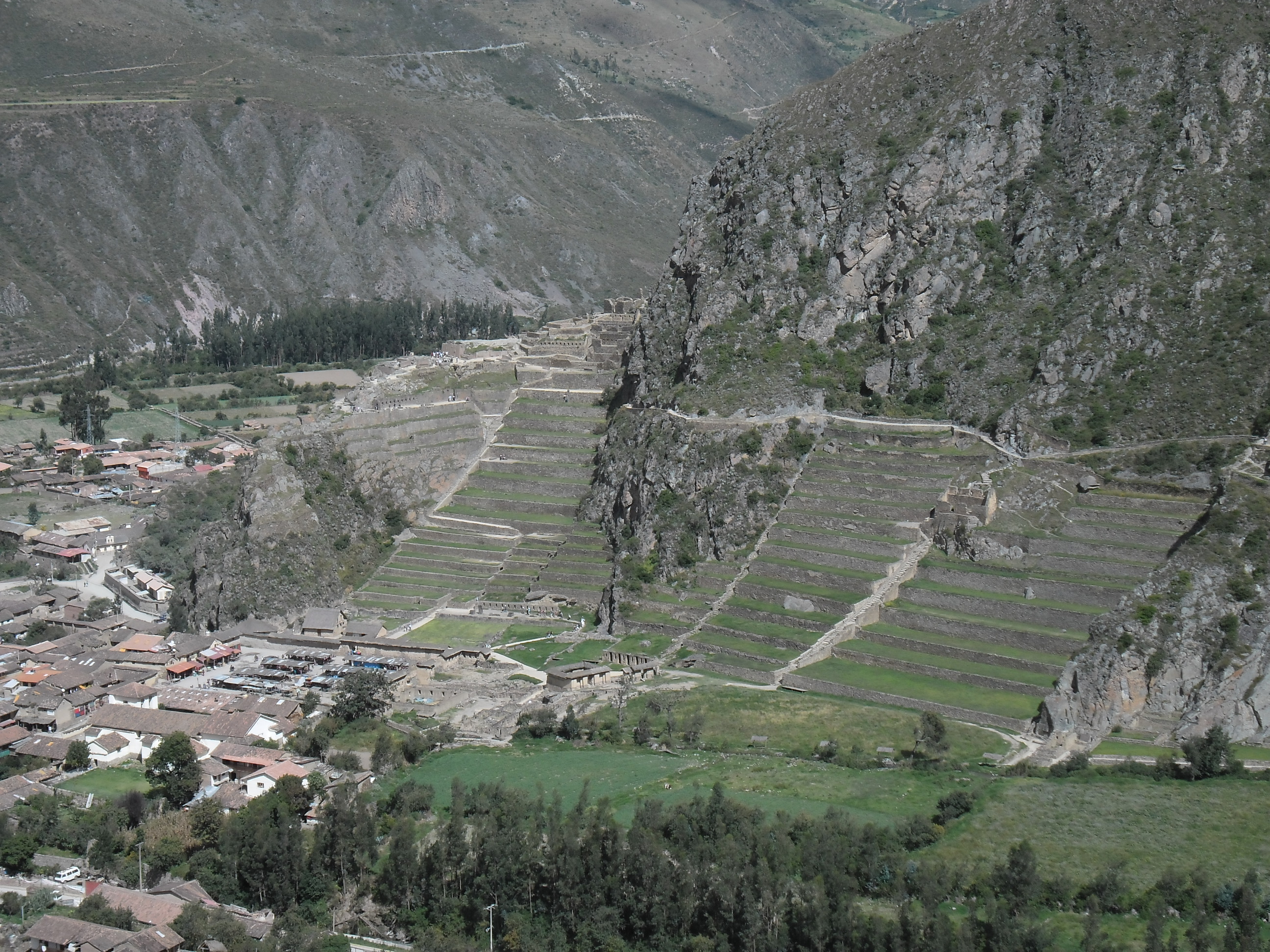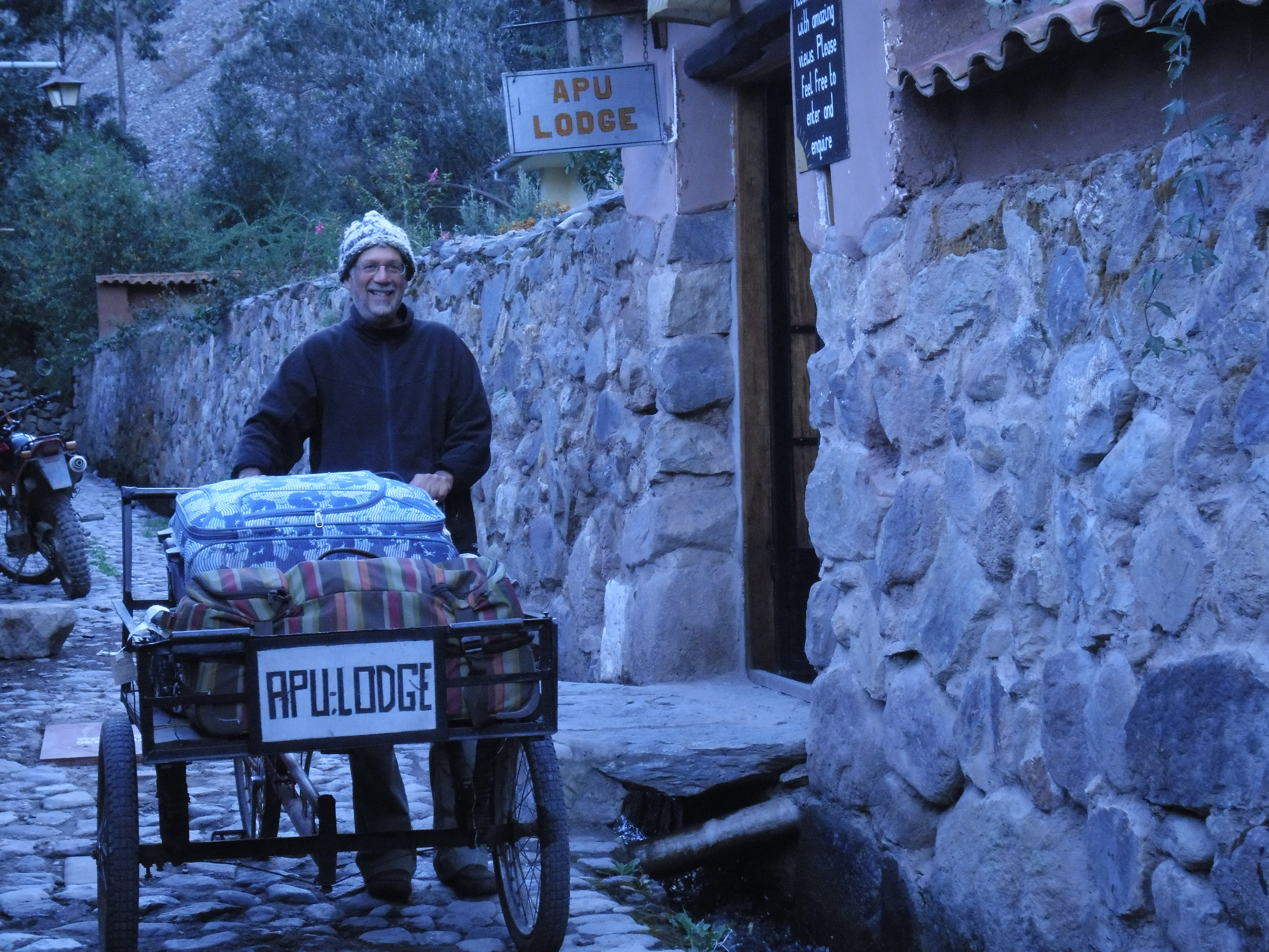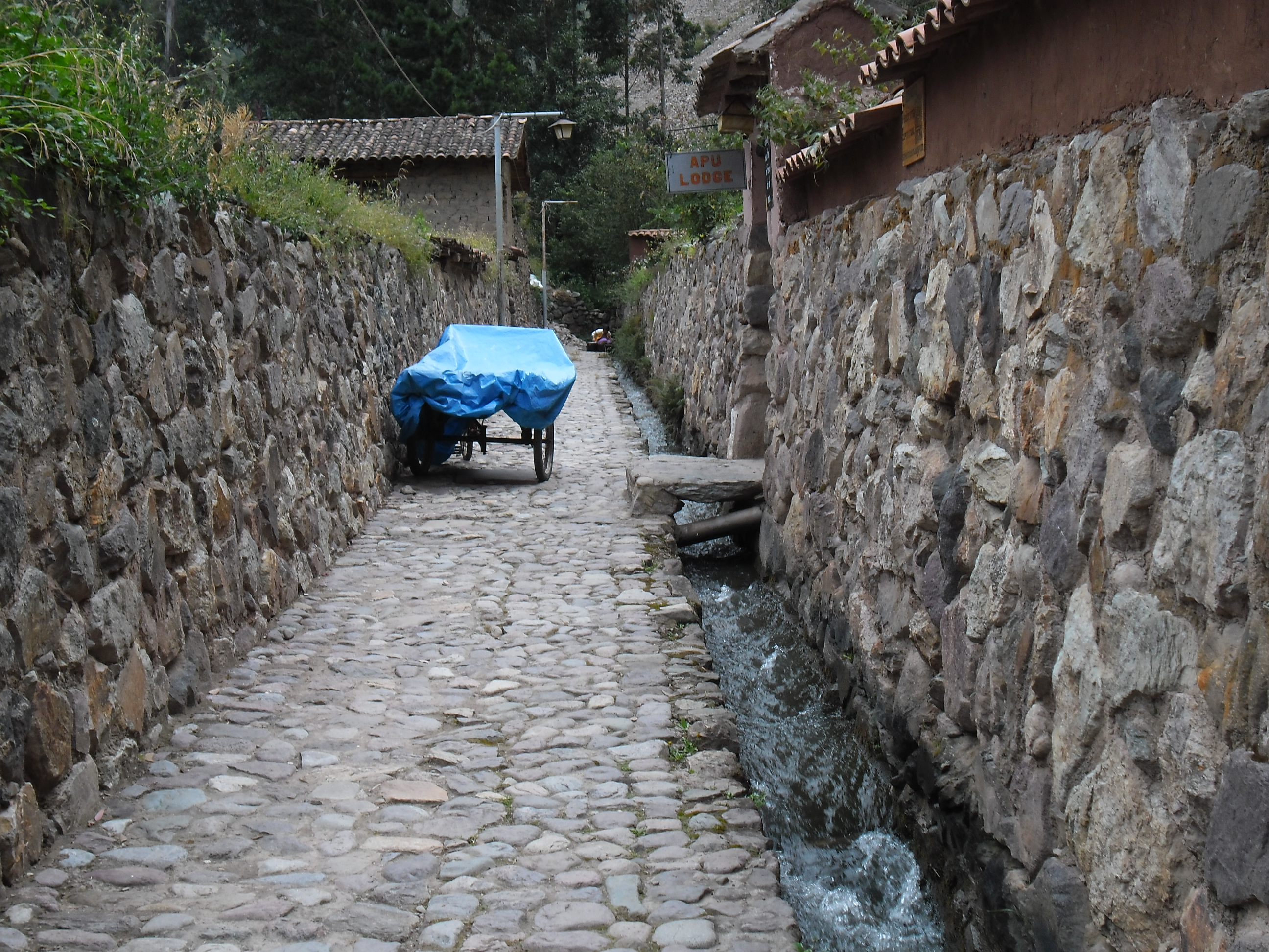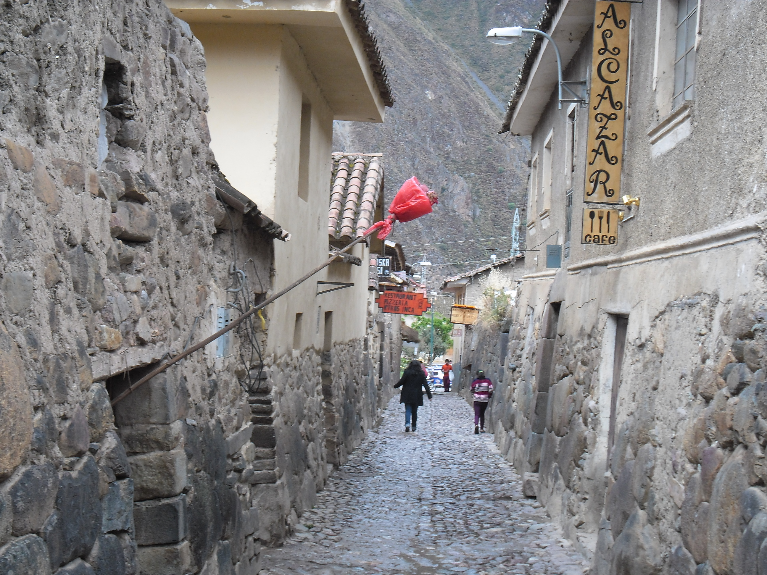 SAM_0275We’ve arrived in Ollantaytambo, Peru, and we have started working at Apu Lodge. Apu Lodge is a bed and breakfast in Ollanta, as everybody here calls it, about a five-minute walk from the plaza. Ollanta is known as The Living Inca City, because the city was built about seven or eight hundred years ago, and it still is pretty much the same city now as it was then. There are no cars in town, except for entering and leaving from the plaza. The streets themselves are way too narrow for cars. The roads in town were built by the Incas, as were many of the walls and buildings.