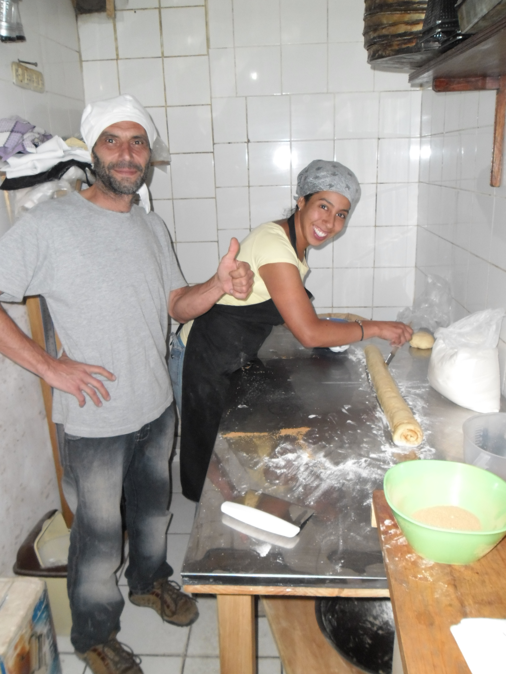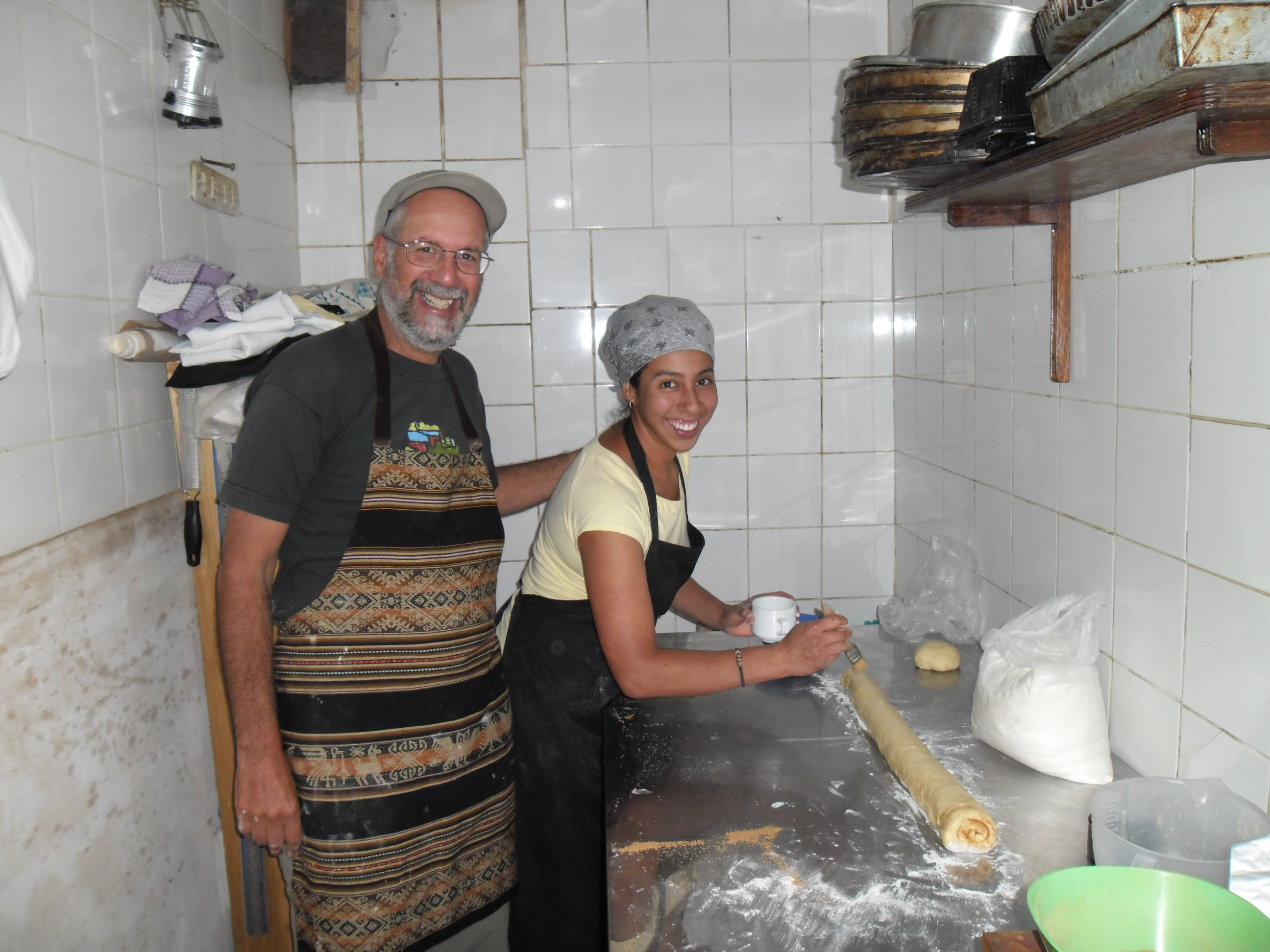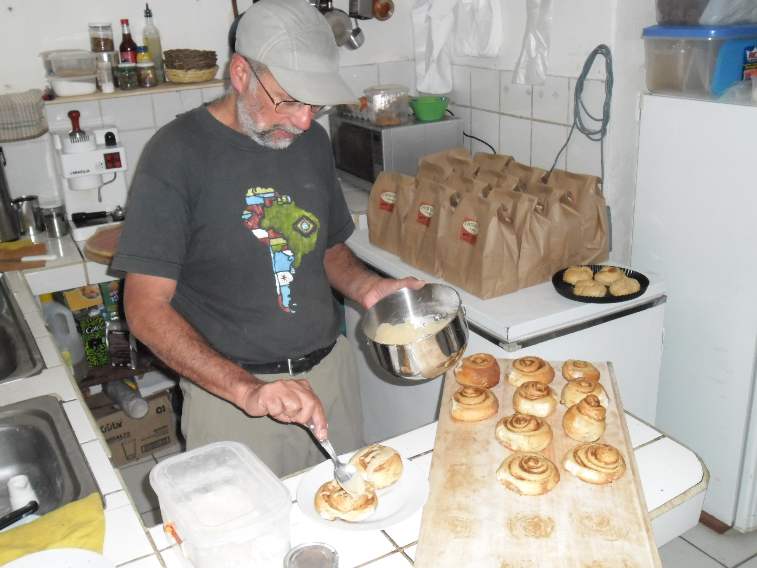 We met Sabrina and Mino, who opened up a little bakery in Ollanta, just a couple of months ago. Sabrina is from Arequipa, Peru, and Mino is from Rome, Italy. They decided that they wanted to live in Ollantaytambo, and they started their bakery. It´s called Piccolo Forno, which means “Little Oven” in Italian. Mino has lots of experience, baking in Rome, and Sabrina is enthusiastic, warm, and welcoming. We talked a little about baking, and Sabrina said that she wanted to learn how to make cinnamon rolls, so away we went. I baked at the bakery one day, then I returned the next week after their daily production, and we made some dough and let it rise, then later in the day, we rolled it out and made some cinnamon rolls. Ollanta is full of tourists who are going to or coming from Machu Picchu, and cinnamon rolls seem like something a lot of them would like.