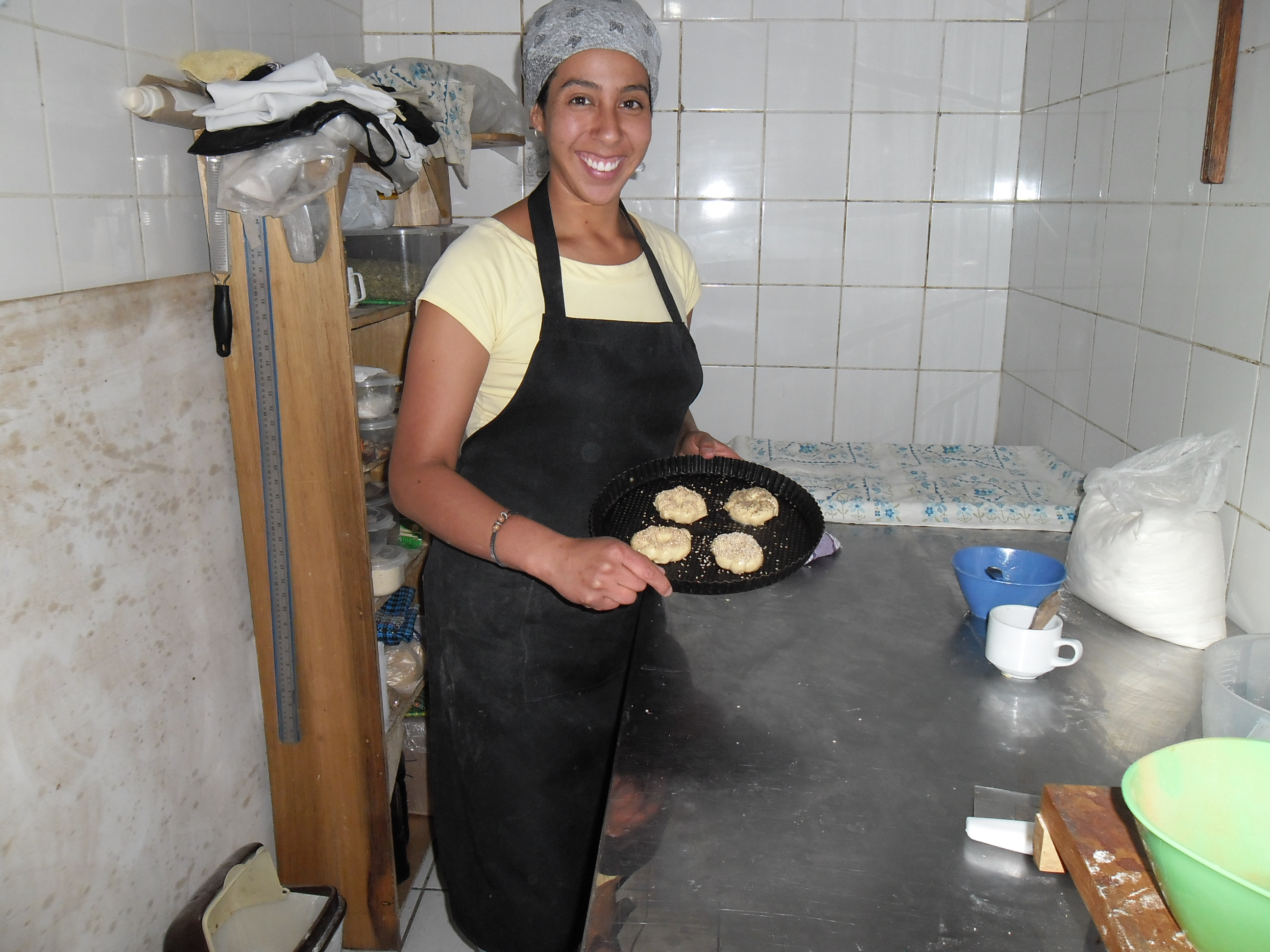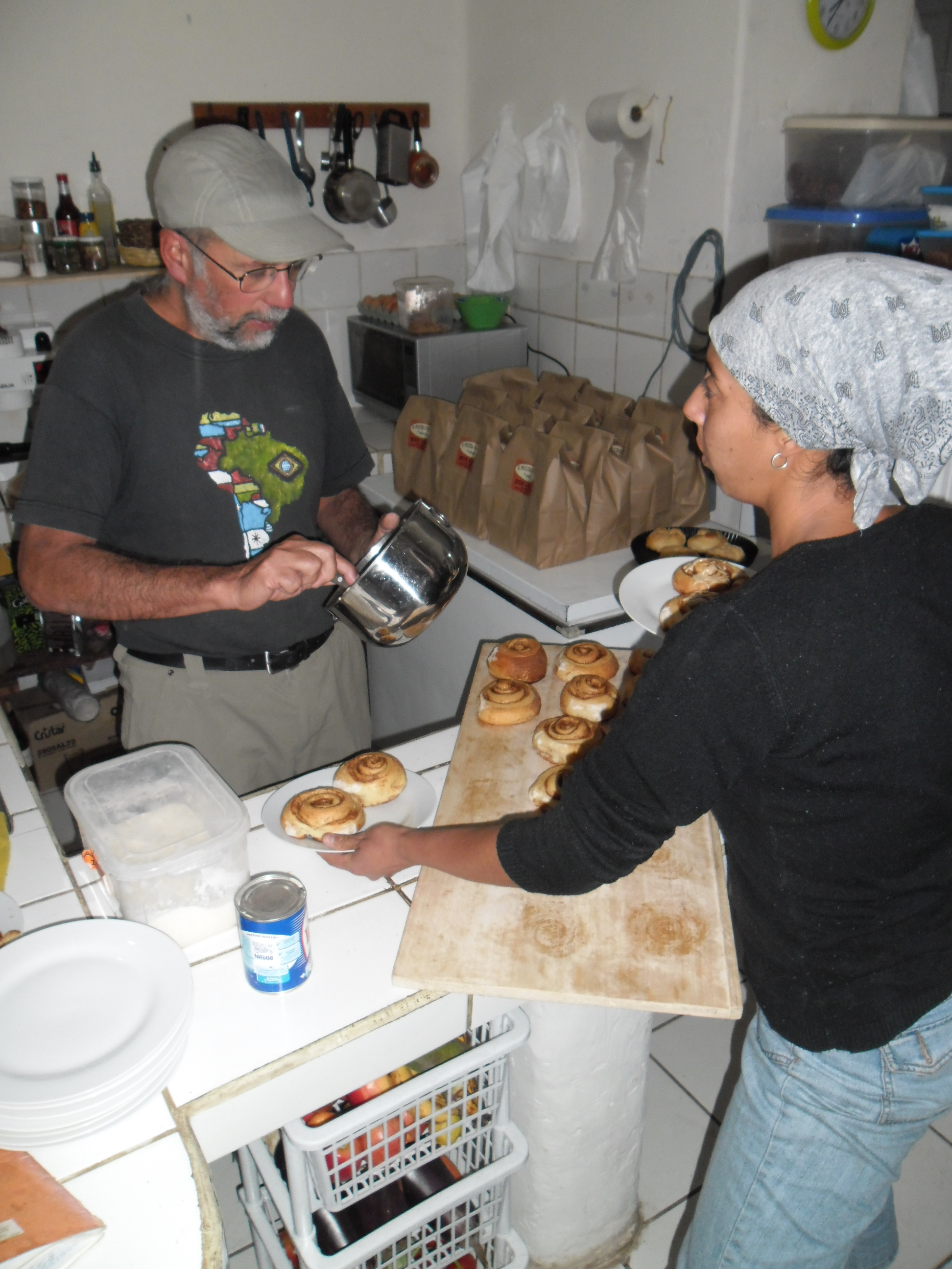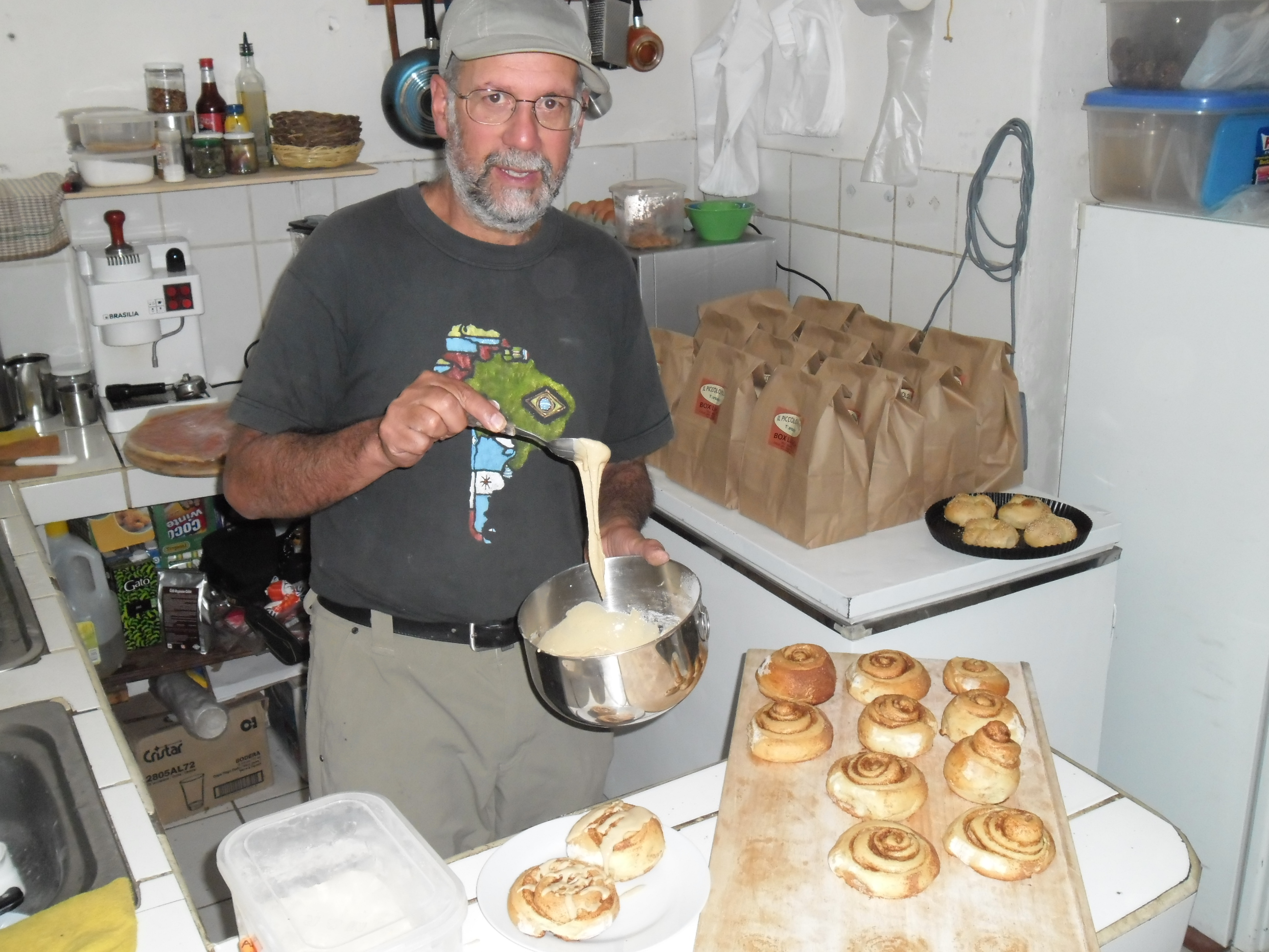 We met Sabrina and Mino, who opened up a little bakery in Ollanta, just a couple of months ago. Sabrina is from Arequipa, Peru, and Mino is from Rome, Italy. They decided that they wanted to live in Ollantaytambo, and they started their bakery. It´s called Piccolo Forno, which means “Little Oven” in Italian. Mino has lots of experience, baking in Rome, and Sabrina is enthusiastic, warm, and welcoming. We talked a little about baking, and Sabrina said that she wanted to learn how to make cinnamon rolls, so away we went. I baked at the bakery one day, then I returned the next week after their daily production, and we made some dough and let it rise, then later in the day, we rolled it out and made some cinnamon rolls. Ollanta is full of tourists who are going to or coming from Machu Picchu, and cinnamon rolls seem like something a lot of them would like.