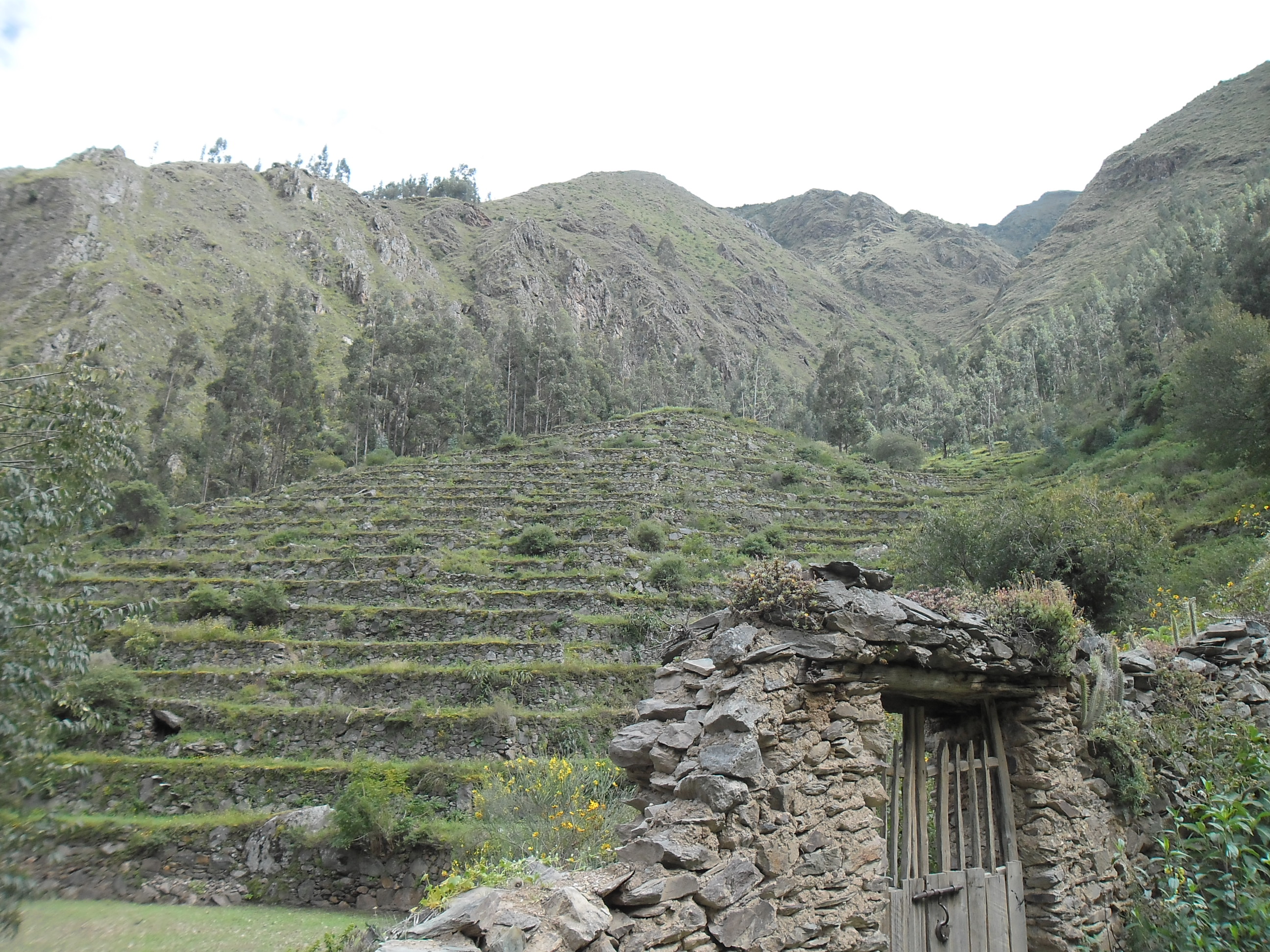 SAM_0370Another day, we spent most of the day hiking from our hotel to another set of ruins, called Pumamarka. These ruins are about five miles from town, up up up into the mountains. We went there again with Alberto. We started up at a little town called Muñaypata, and walked by some terraces. The terraces allowed the Incas to grow food on the steep mountainsides.