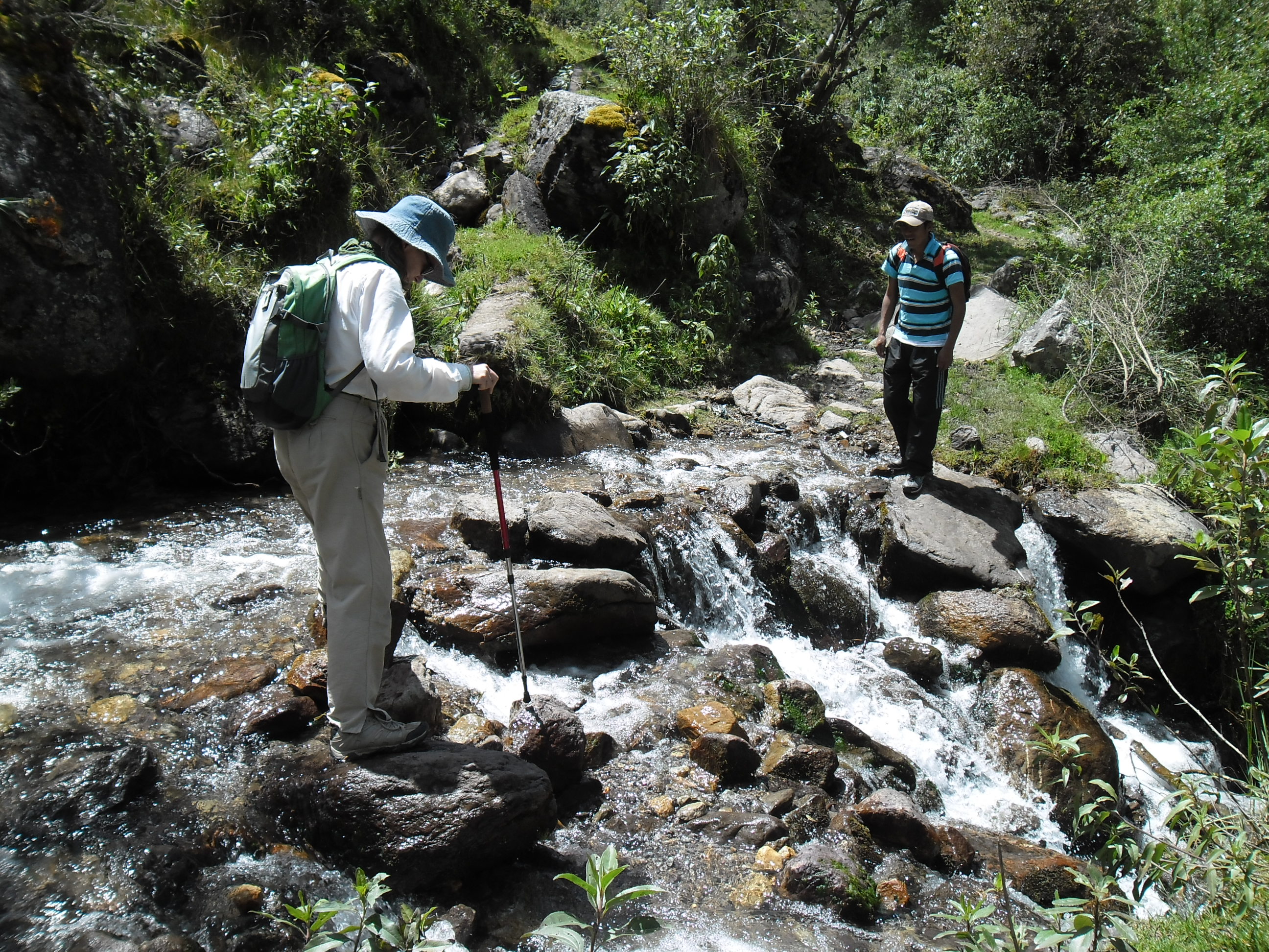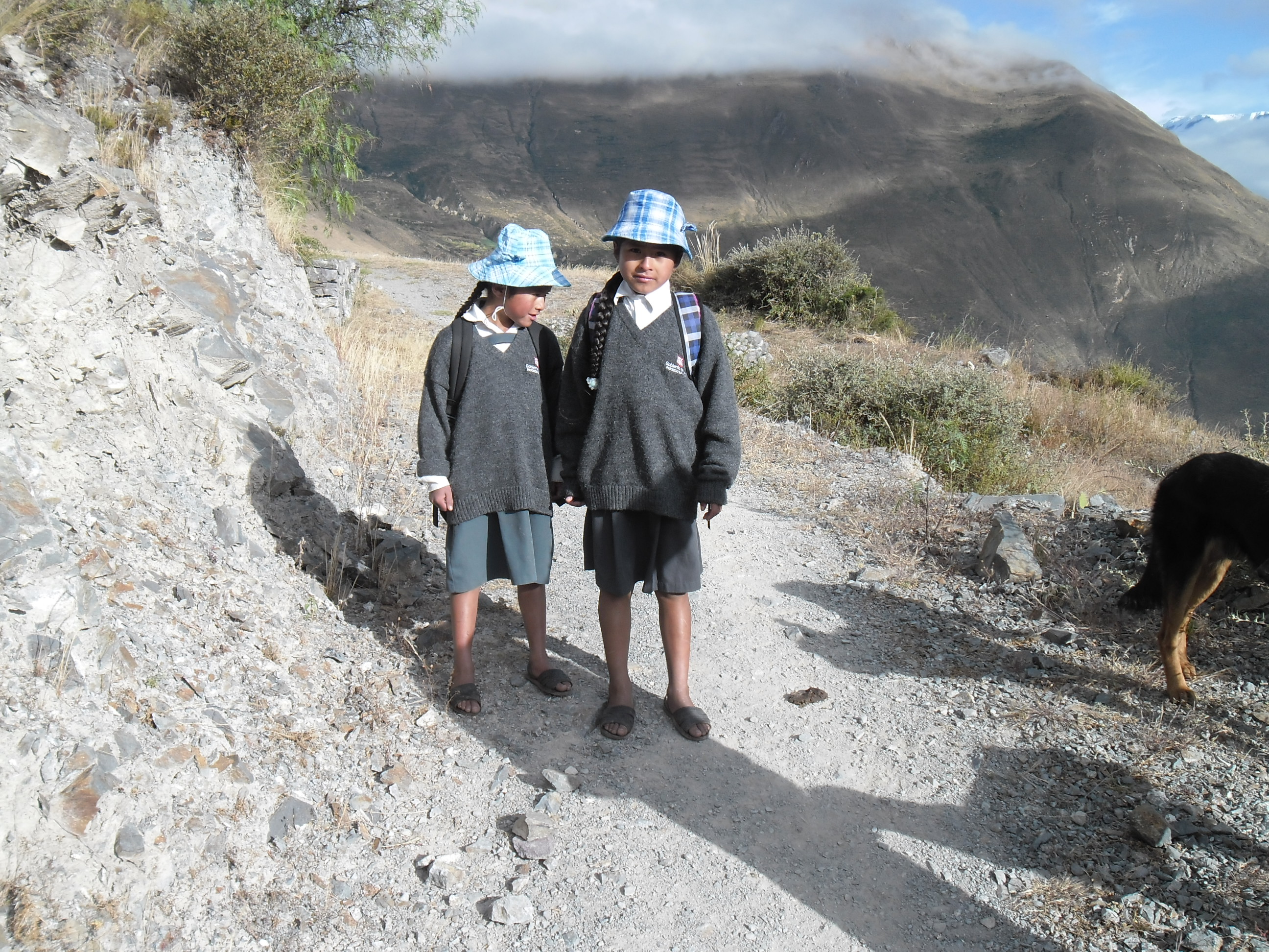 SAM_0736SAM_0737SAM_0739SAM_0740We continued walking for an hour or so, when we met Neirut and Virginia. They were on their way to school,  and they walk this trail every day. We stopped and talked with them for a while, and shared some chocolate with them. You can think that you are really out there in the wilderness, but people live everywhere in the mountains. Neirut and Virginia live in a little house, that we soon would pass. Later on in the day, when we were returning from high up in the mountains, we ran into them again, returning from their day at school. It kind of puts to shame the myths of “When I was your age, I walked five miles to school, through the snow.” These kids walk through the Andes every day.