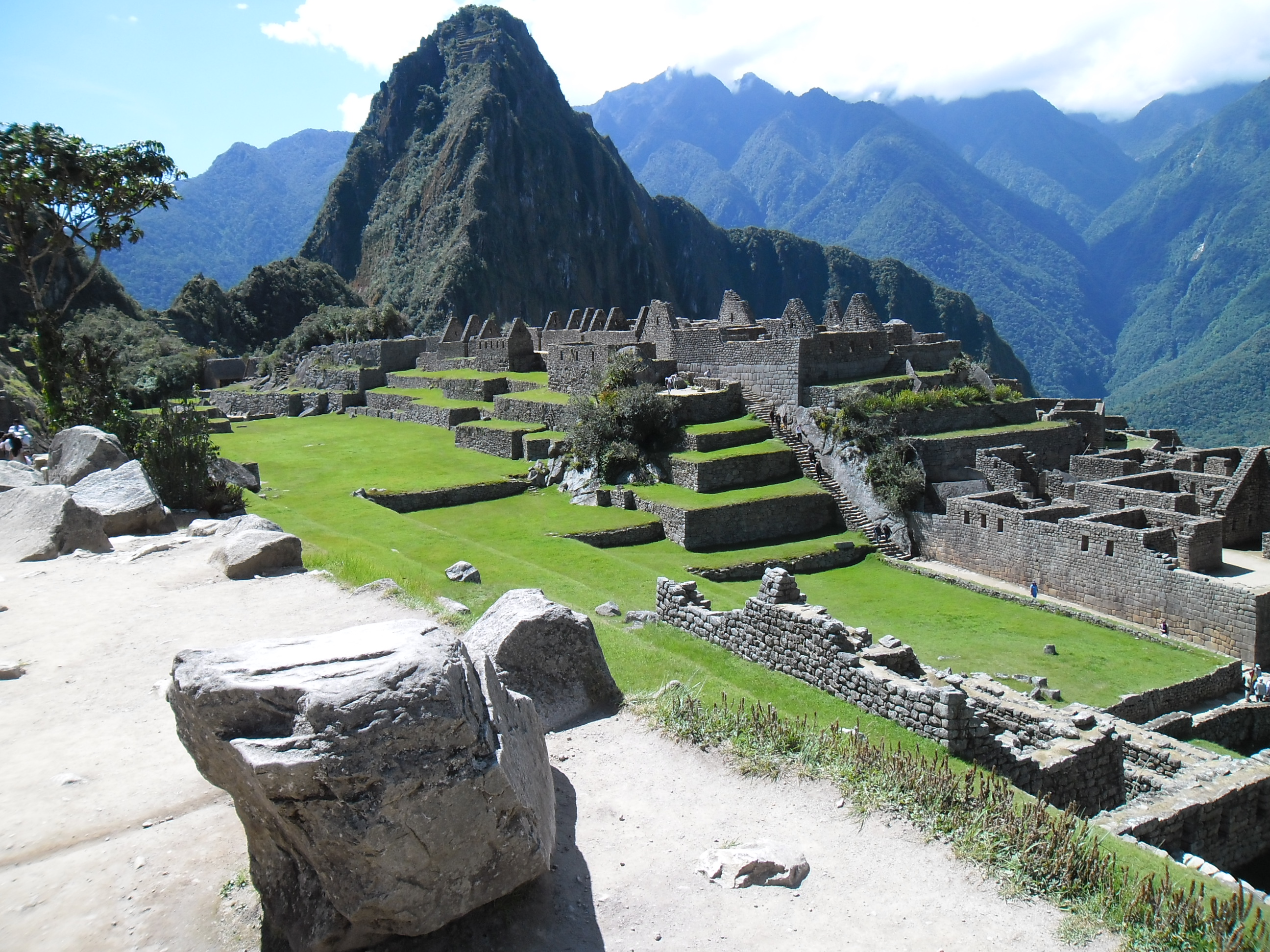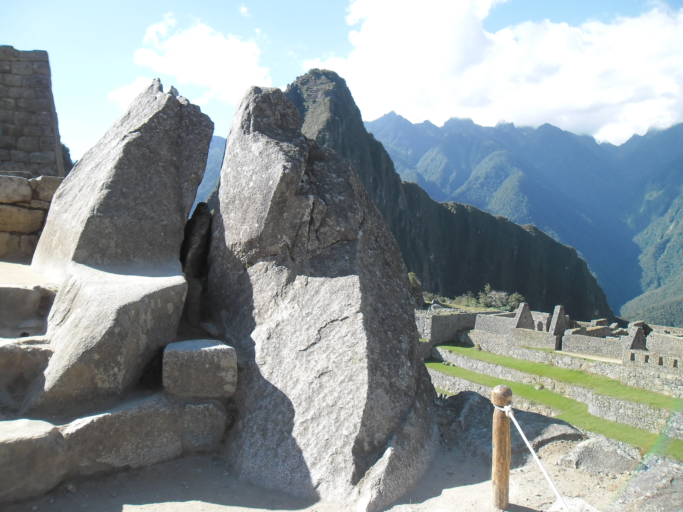 SAM_0666The masonry work in Machu Picchu is exquisite. For the normal people who lived there, they could build a house in just a few months, roughly cutting stones and slapping them together with mud. (These houses are still standing just fine.) For the temples, however, they pulled out all the stops. The stones were cut and polished with painstaking precision, and then assembled flawlessly. The buildings reflect the mountains. The mountains reflect the buildings.