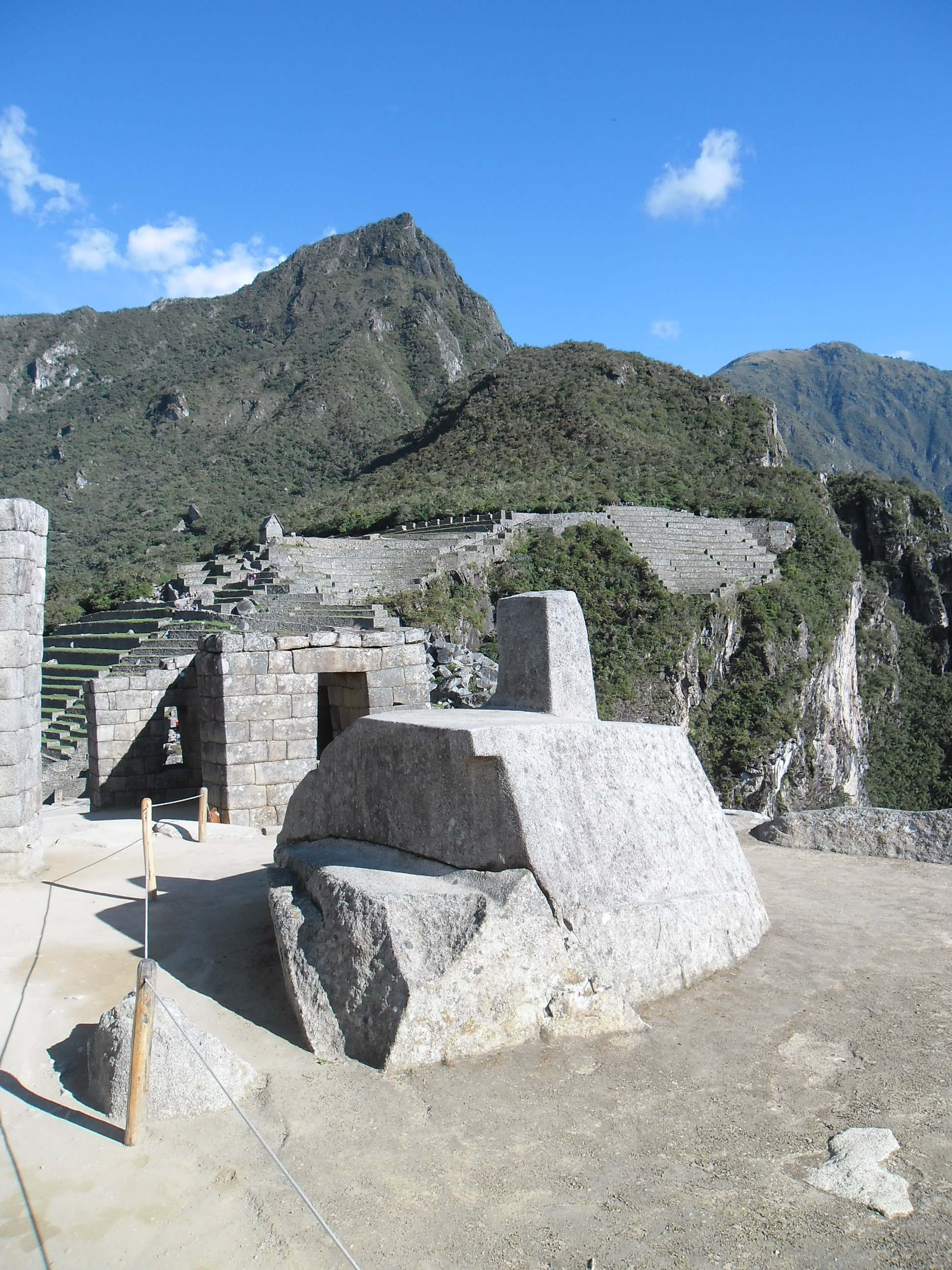 SAM_0633SAM_0643SAM_0649SAM_0653SAM_0669SAM_0670The Incas were pantheists, which means that they worshipped nature. The mountains were living gods, the sun was a living god, the rivers were living gods. Machu Picchu was totally designed before one stone was put in place, and it was designed not only as a city where people could live and with its own agriculture, but it also was designed to reflect and to offer prayers to the mountains and the sun. One of the temples, called El Templo Principal, is a three-walled building. Its open side is perfectly aligned, facing Mount Machu Picchu, so that the mountain god could be received in the temple. Mount Machu Picchu is the tallest mountain at the site, and was the main god of the site.