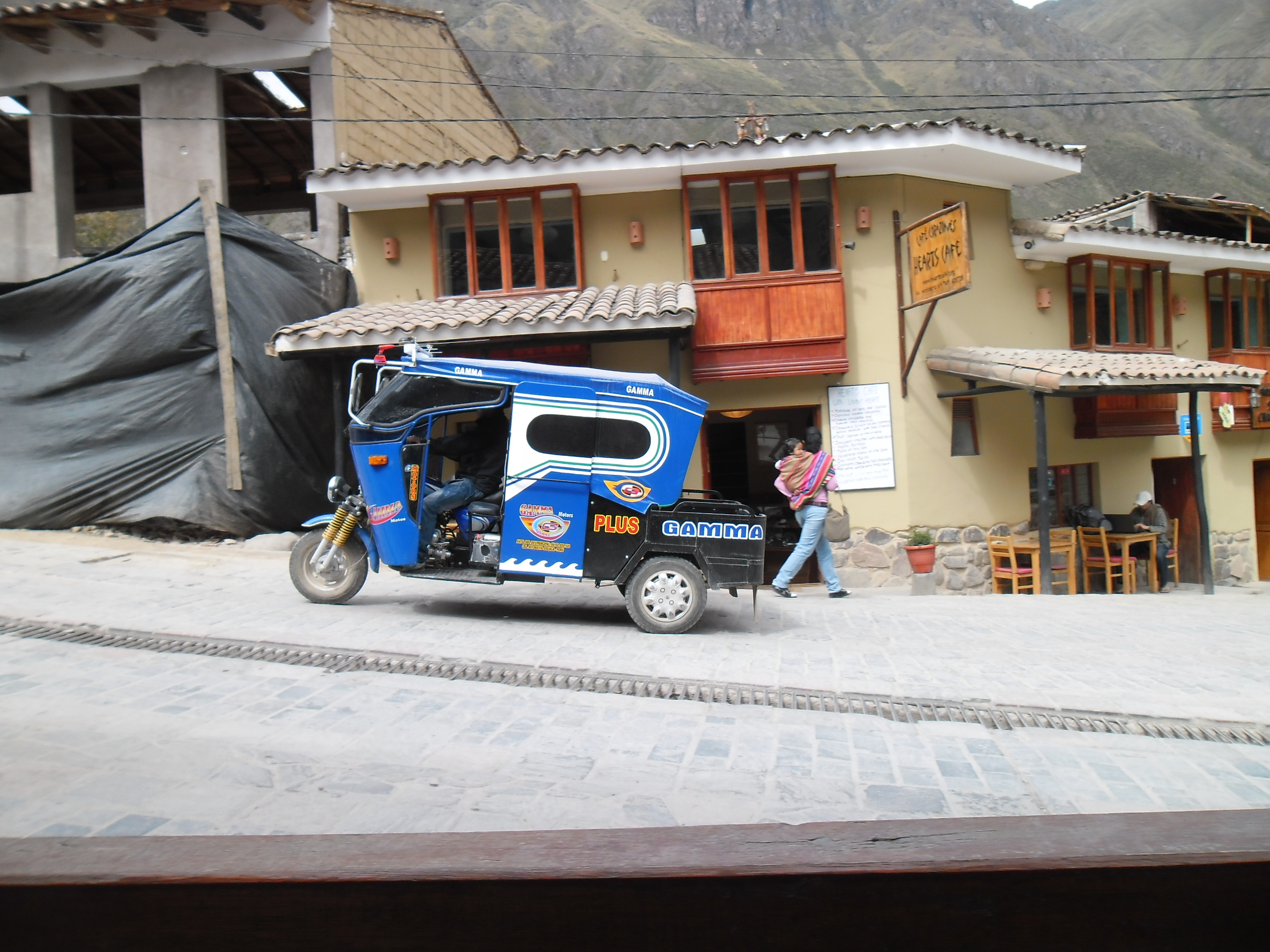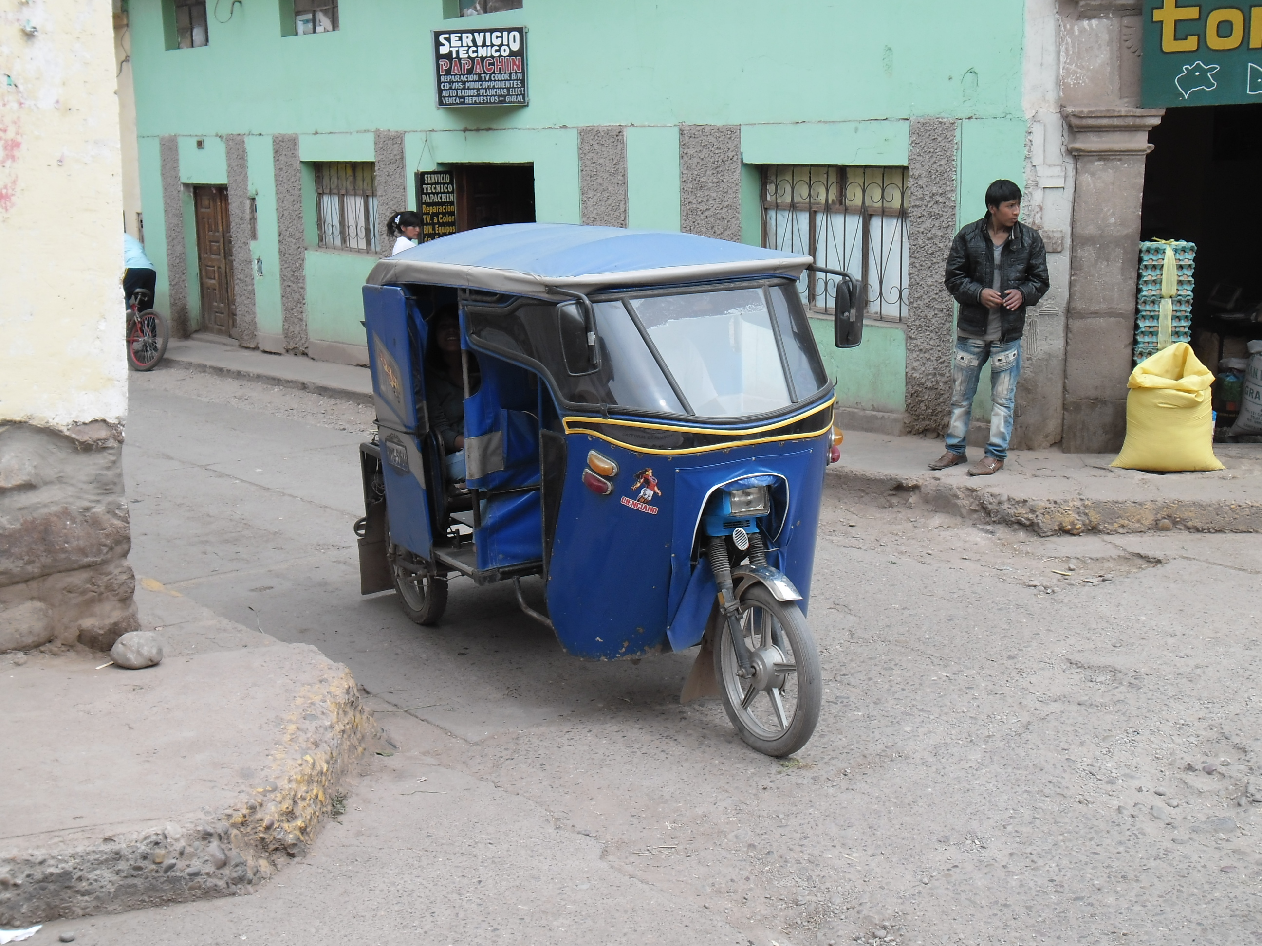 SAM_0828SAM_0684Mototaxis are a popular mode of transportation. These are motorcycles with three wheels. The driver straddles the seat, and often pushes off with his leg to turn or back up. They look an awful lot like Fred Flintstone when they do it. They give cheap rides, often short ones, and they are everywhere where we´ve been in Peru.