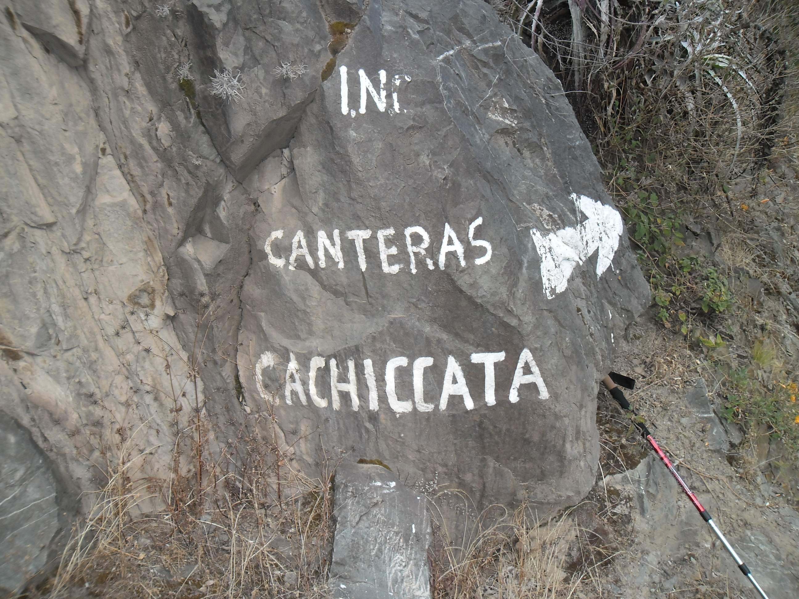 We set our alarm for 5:00, and we were hiking by a quarter to six. We followed the trail that is marked on a big rock by the Instituto Nacional de Cultura. The trail continues with a view of the train station, with trains leaving for nearby Machu Picchu. The trail goes to the rock quarries, called canteras, where the Incas found and sculpted the giant rocks that they used in Ollanta for their temples.