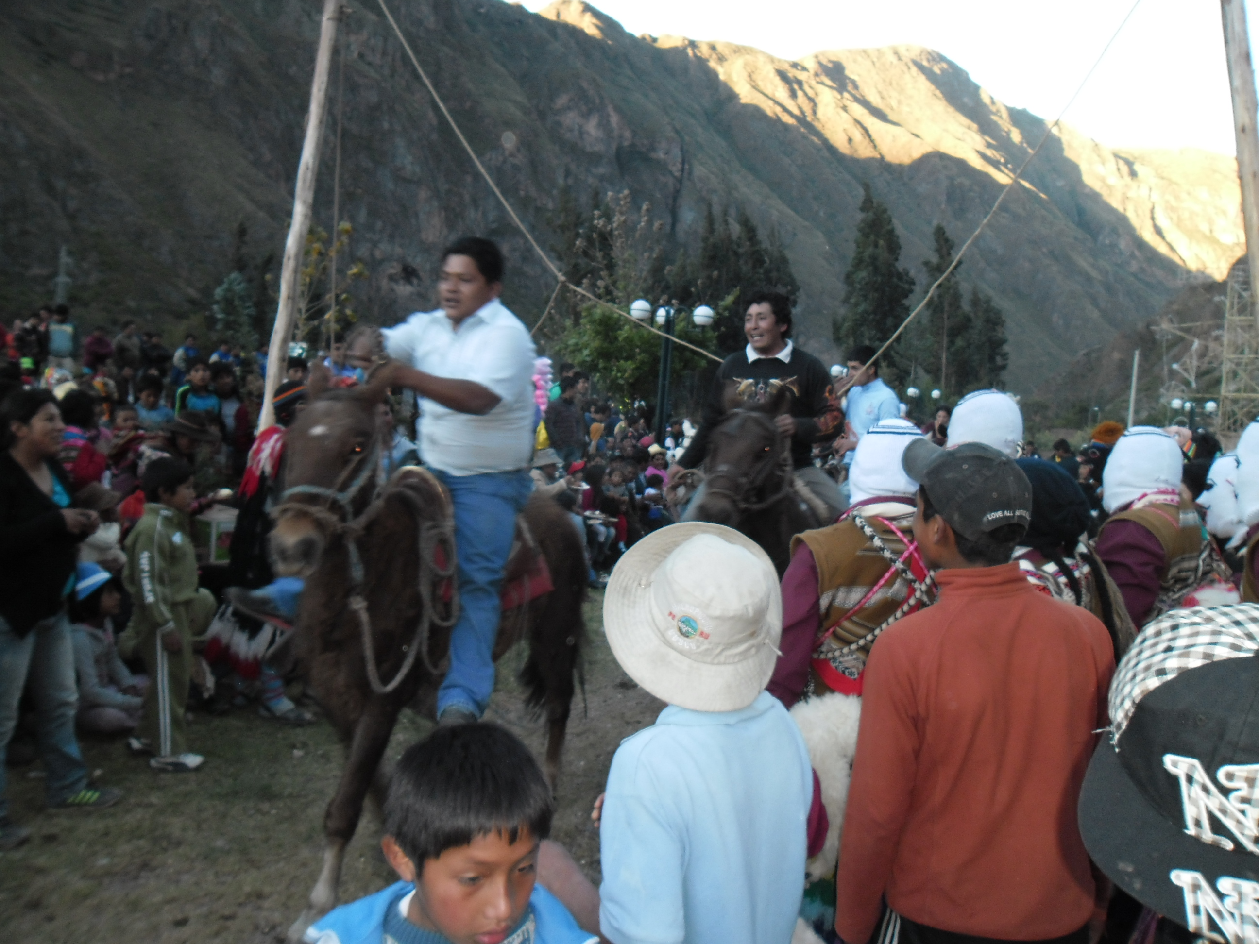 SAM_1088SAM_1085SAM_1084SAM_1095SAM_1081There was a competition to see who could grab the corn. They tied a corncob up to some ropes, then they pulled strings to make it jump up and down. Guys (and some girls) on horses would gallop at full speed and try to grab it as they sped by. Whoever was able to grab it got a chicken. If nobody could get it, the guys with masks would push each other and leap up for it.