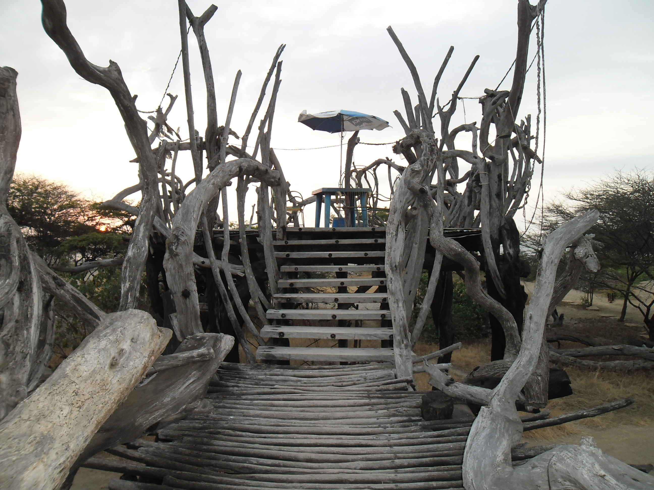 SAM_1229SAM_1230SAM_1232SAM_1236SAM_1237SAM_1239SAM_1137Tres Puntas was built by a guy named Leon, from Barcelona, over the course of years. One of the features was El puente rústico. He collected twisted wood and built the bridge, which really didn´t go over anything, but it did afford some elevation, and we often sat up on top to watch the sunset. Leon also loves the hairless Peruvian dogs, and he raises them.