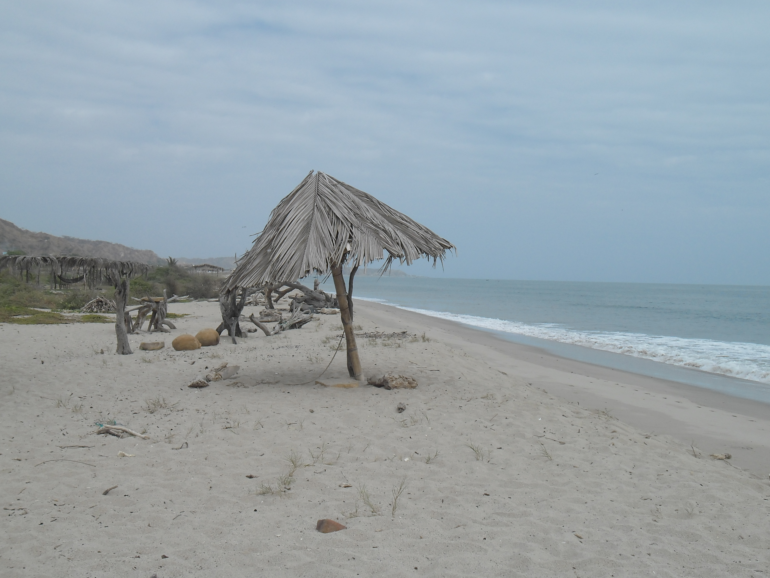 SAM_1235We left Ollantaytambo, high up in the Andes, and flew to Northern Peru, just south of the border with Ecuador. We stayed on the beautiful, isolated tropical beach south of the town of Zorritos. It was high season in Ollanta, but low season on the coast. We stayed in a hostel called Grillo Tres Puntas, and we pretty much had the whole place, and the beach, to ourselves. We relaxed in the hammocks and took long walks, ate lots of ceviche and seafood stew, drank quite a few caiparinhas, and lazed away   a few perfect days.