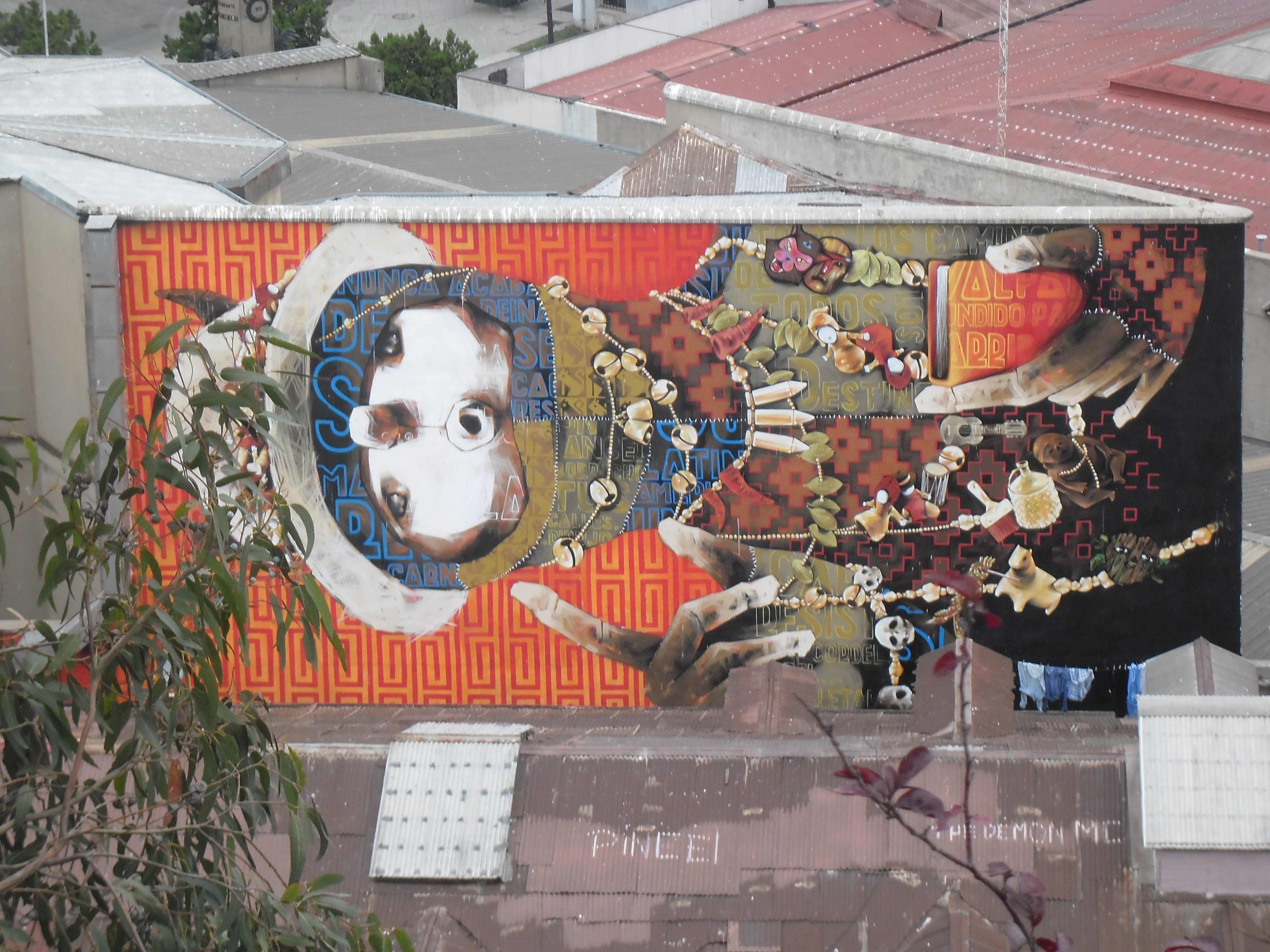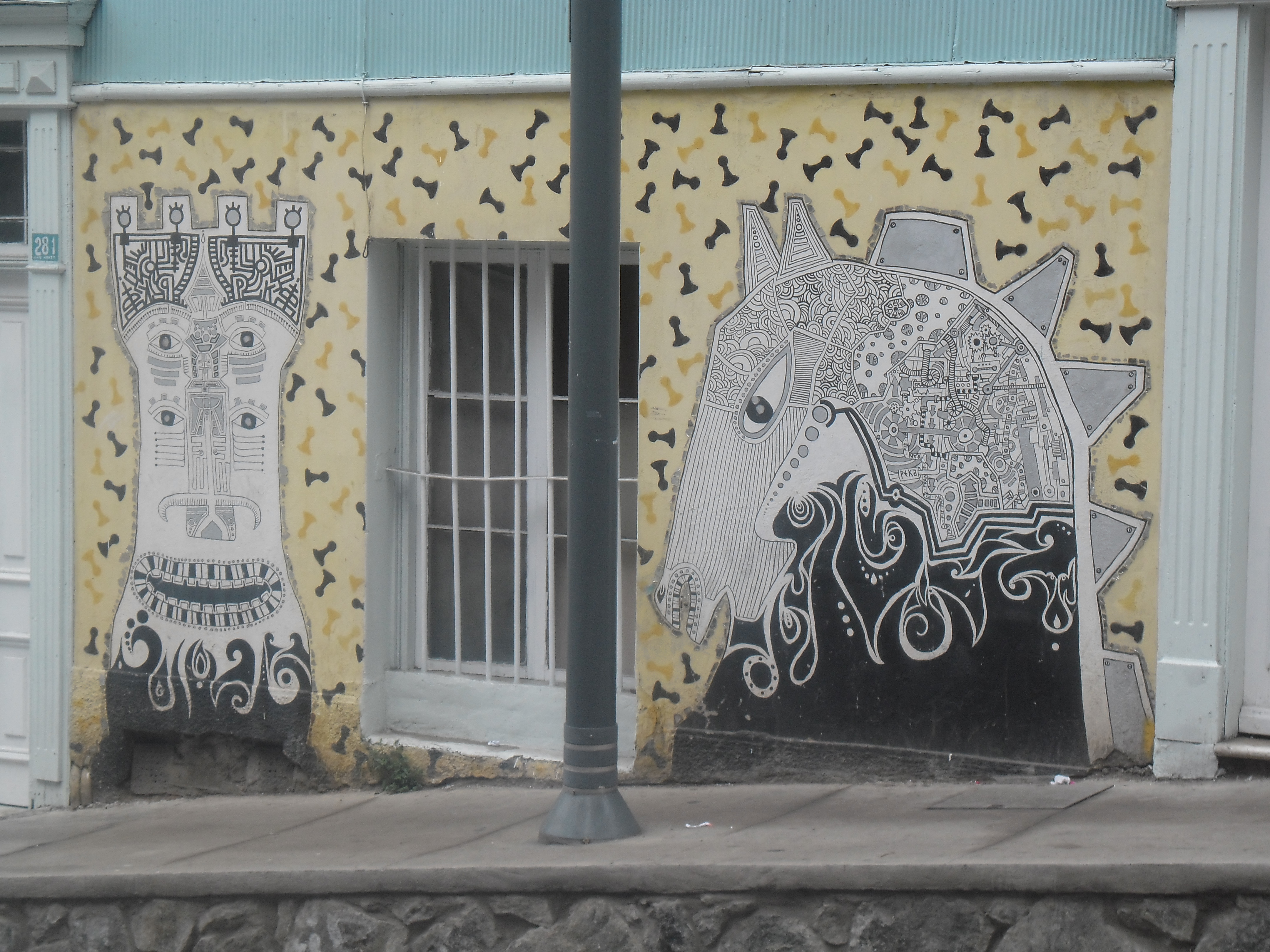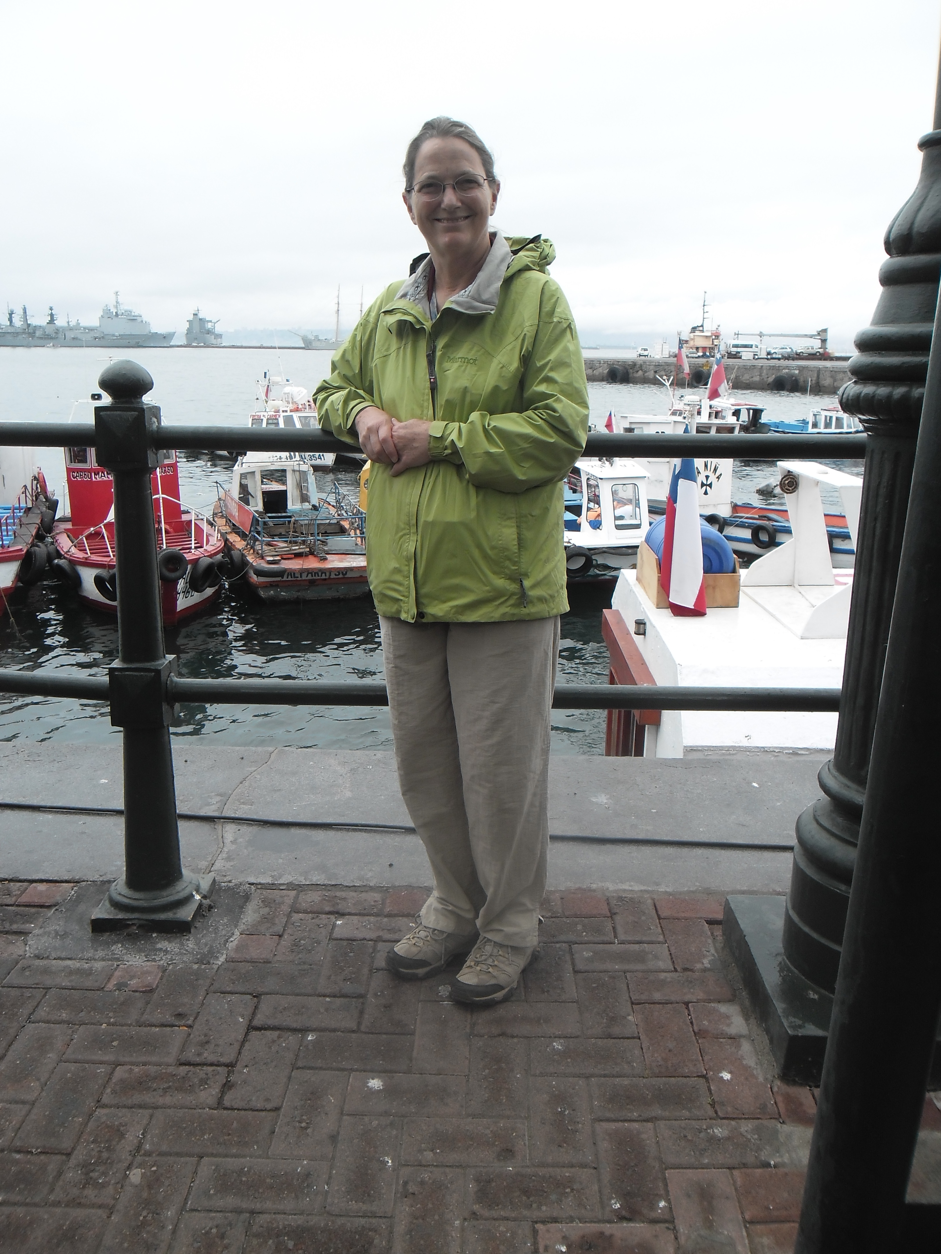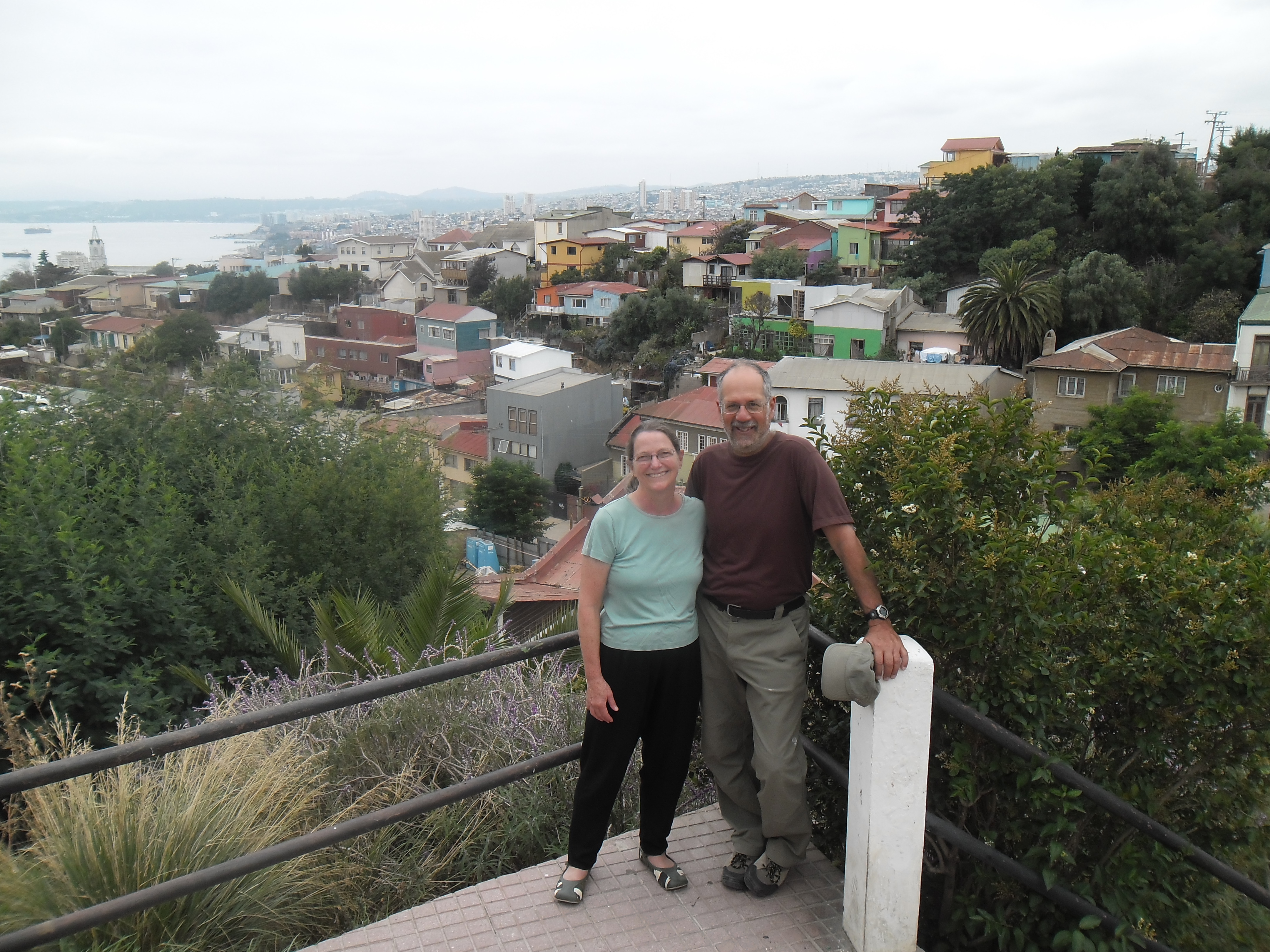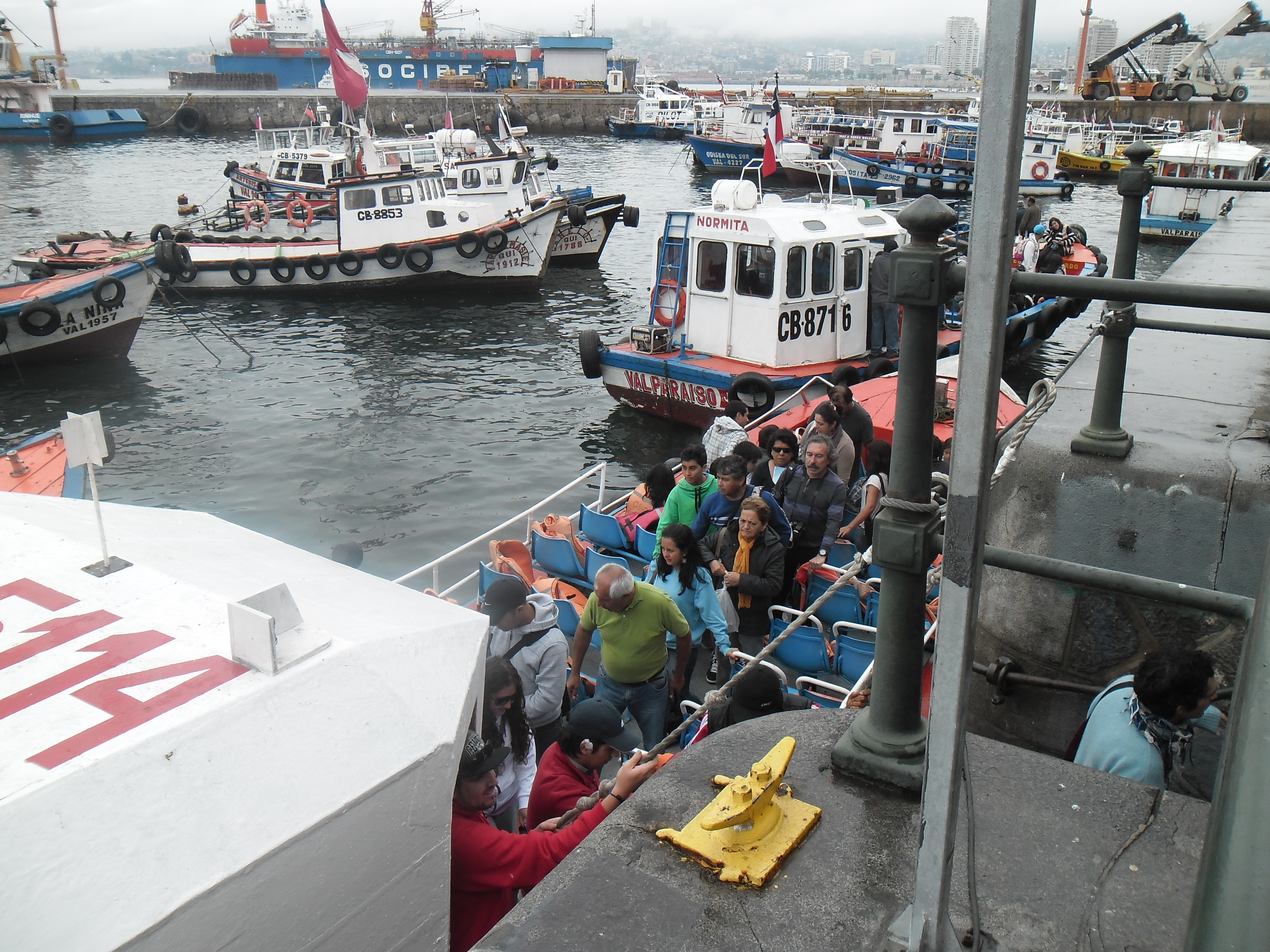 She finally got her chance after her retreat. We went straight there from Santiago. Valparaíso is a port city, about 100 kilometers from Santiago. The guidebook says that “it is the most unique city in Chile, and perhaps in all of Latin America.” This is because of a combination of natural geography and human ingenuity. The city is designated as a UNESCO World Heritage Site, for its architecture, geography, and history. The city is on a bay (hence the port) and it rises dramatically out of the ocean. It is immediately steep and hilly; Valpo is comprised of 42 separate hills, some of them very steep and high. These hills (cerros) offer magnificent views of the beautiful bay. Also, humans have built beautiful buildings up and down all of these hills, and have built boxcar elevators (ascensores) that will c arry you up and down the hills, for a small price. The earliest of the ascensores were built in 1886, and the most recent one in 1920. There used to be 39 of them, but now there are only ten that are still operating. They’re old and rickety, but they still work, and they definitely save your knees. SAM_0543SAM_0514There are great views of the city on the top of the cerros.SAM_0515Valparaíso is a working port. The navy has ships there, and big freighters come and go, loading and unloading. Cruise ships too. The port is always loaded with tourists watching the action. You can also get on little tour boats to take a tour of the bay. SAM_0513SAM_0511SAM_0510SAM_0512The town is full of tourists. Lots of peole from Brazil and other parts of Chile. Lots of people from France and Germany. Mostly, they wander through the streets, looking at the beautiful views and discussing which restaurant they want to eat at. The big vistas out to the bay, the steep streets, the colorfully painted buildings. The town is also famous for the colorful murals that are all over. SAM_0554SAM_0522SAM_0519SAM_0516Even Salvador Allende has a rememberance.
