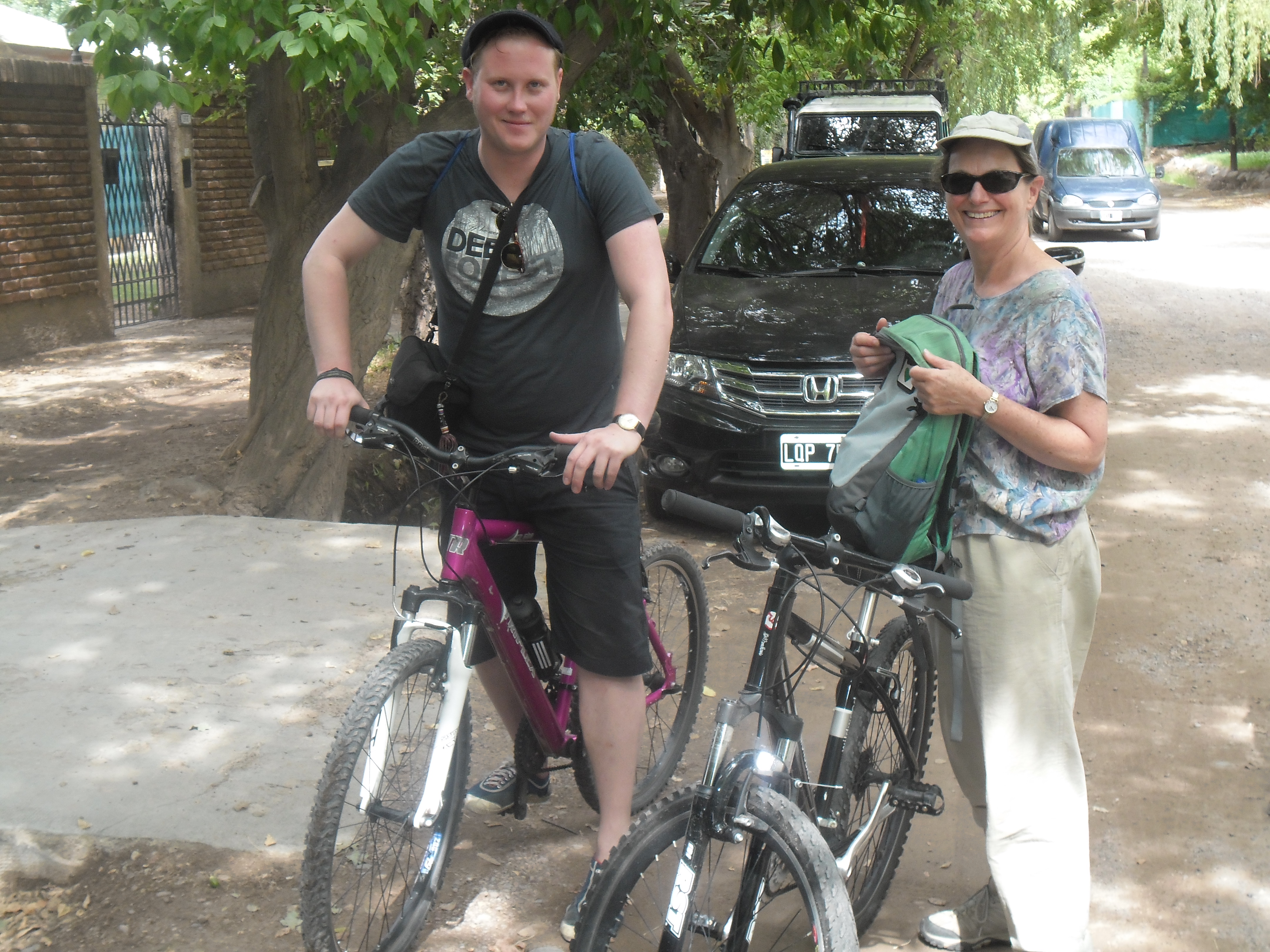 Malbec is the most famous wine from here. Malbec is what makes Mendoza one of the eight wine capitals of the world. Nobody else does Malbec. California does Zinfandel, Australia does Syrah, Germany does Lieframilch, Italy and France have their specialties. But Argentina has Malbec. And a good Malbec is pretty tasty. SAM_0602We didn´t stay in Mendoza very long–four days–but we did manage to combine two of our favorite things, bikes and wine, in a bicycle winery tour. We biked to three different wineries on the outskirts of Mendoza, got the tour of the wineries, and we drank a lot of good wine. Martín has a little business, taking people around and talking wine. He himiself is a wine grower and a bicycle builder. Lawrence from Germany, Senon from Australia, and Joro from Bulgaria (our first Bulgarian!) went also, a total of six of us. Martin’s rule was, “If anybody looks like they’re too happy, I call a taxi and their tour is over.” We all were able to contain ourselves, and a great time was had by all.