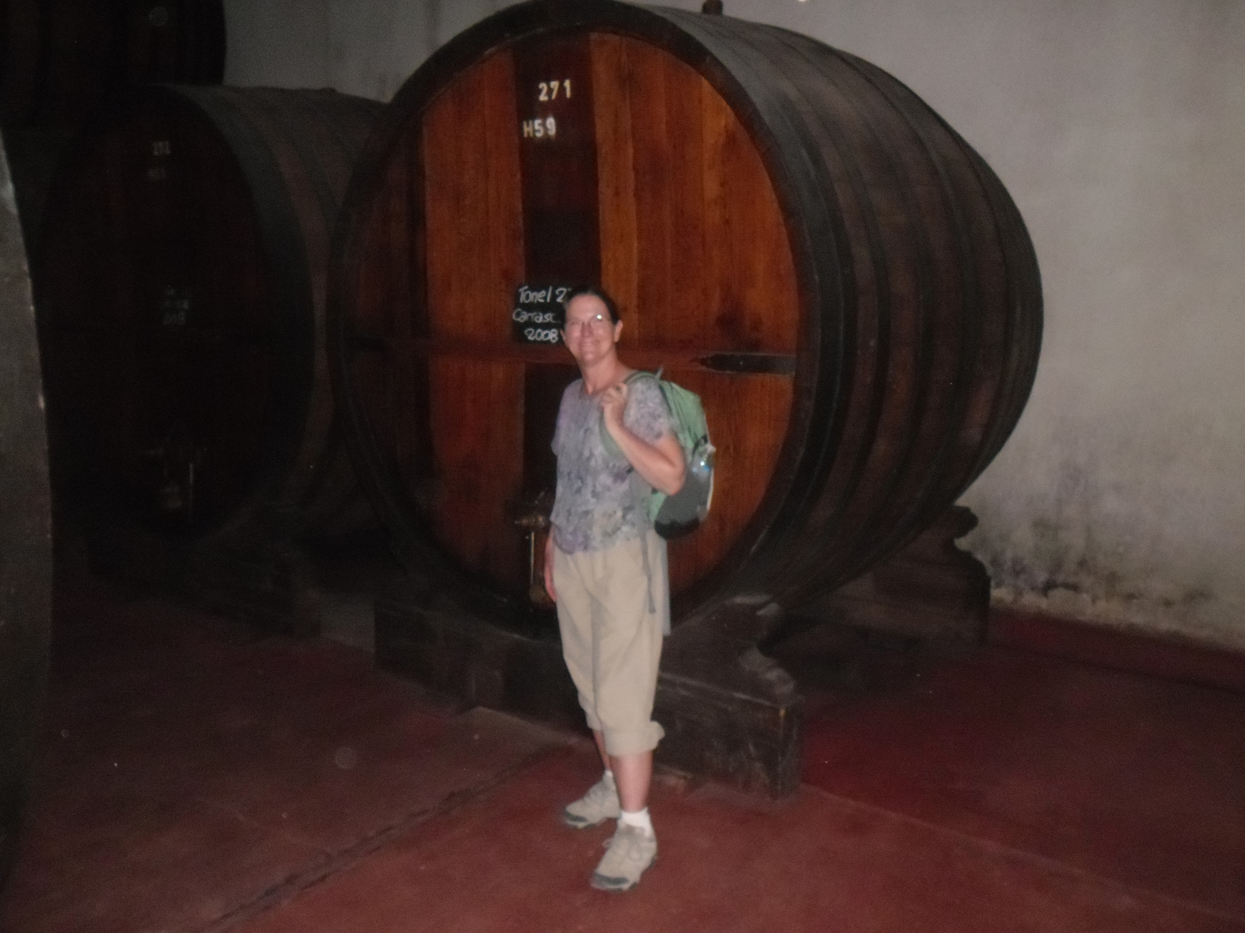 Our first winery was a very small, very personal winery, named and owned and operated by Patti Caramelo. His name is on every bottle, and one of his impprters is in Oregon, so maybe we’ll find it in Eugene. Patti wasn’t there on the day that we arrived, one of the few days of the year when he’s gone. His three daughters are all involved in the winery, as growers and marketers. One of the daughters, Cecilia, talked to us about the winery and about wine. We learned how to swirl the wine properly, in order to produce what we English-speakers refer to as “legs.” These are the tell-tale traces of wine that release most of what we smell. I asked Cecilia what they call them in Spanish. They are called lágrimas. Tears. It´s more poetic and evocative than legs, and, I believe, more accurate. Running down a glass, they do look like tears, running down a cheek.