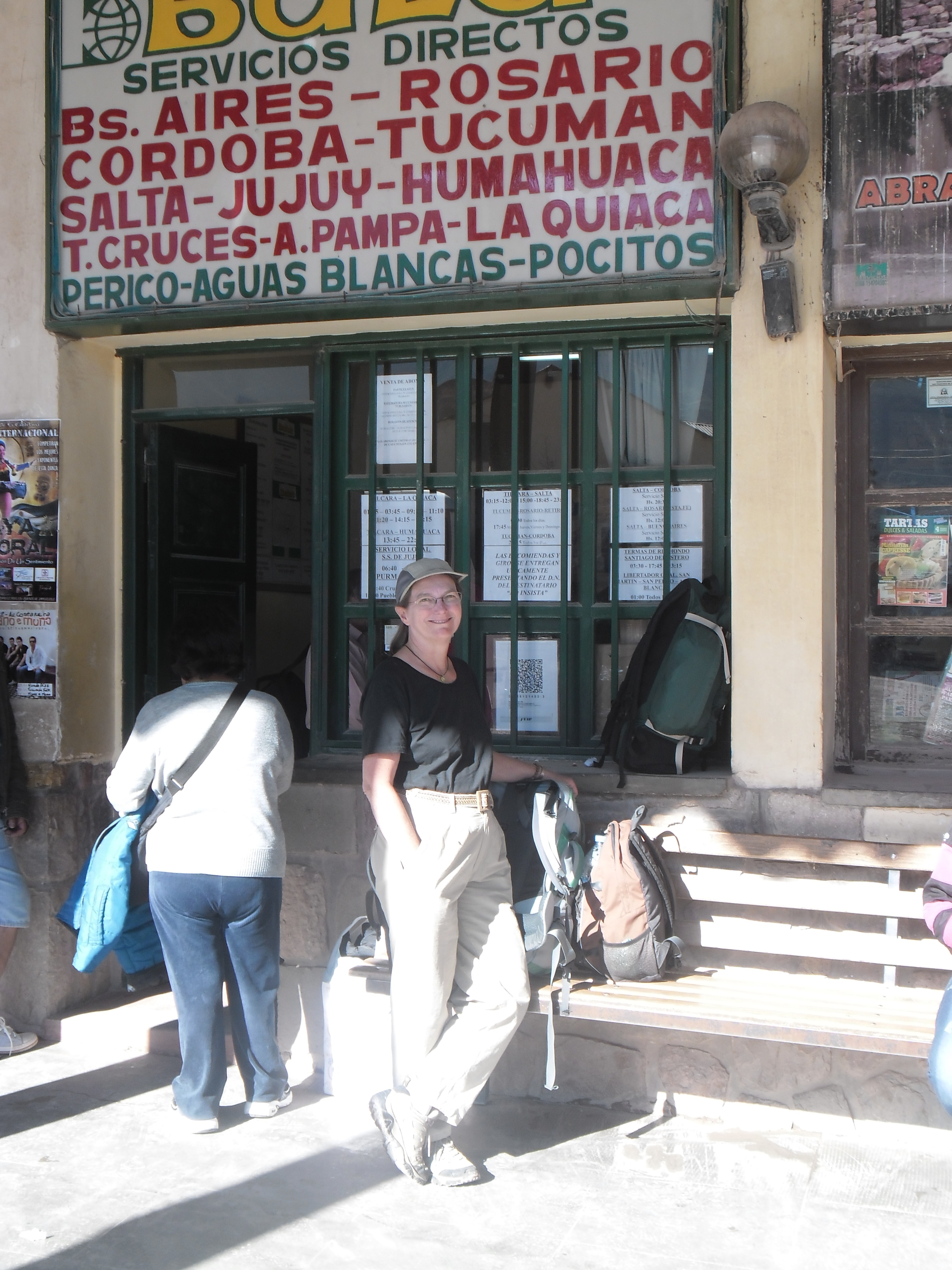 We left Tilkara, bound for Bolivia. A new country, a new culture. We bid farewell to Argentina, the immense country. Here´s Monica at the bus station, waiting for the bus that will take us northward.