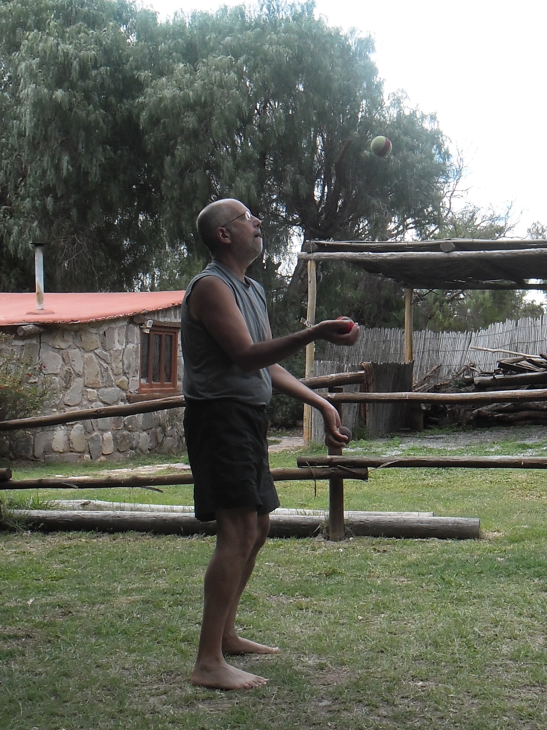 He wanted to do a real Argentina asado (barbeque) with us, so we planned it. He asked us what time we wanted to eat. We knew that we were in Argentina, the land of late dinners, so we didn’t want to say anything too early. We said, “How about eight o’clock?” Raúl was appalled. “You can’t eat at eight o’clock! What are you thinking???”  “Okay, how about nine o’clock?” “Noooo, it’s still light at 9:00.” So, he came up to the terrace at 9:30 to start the fire, and at 1:30 am, we were still sitting around the table, along with Paula and Richard from Chile, who were also staying in one of the apartments.