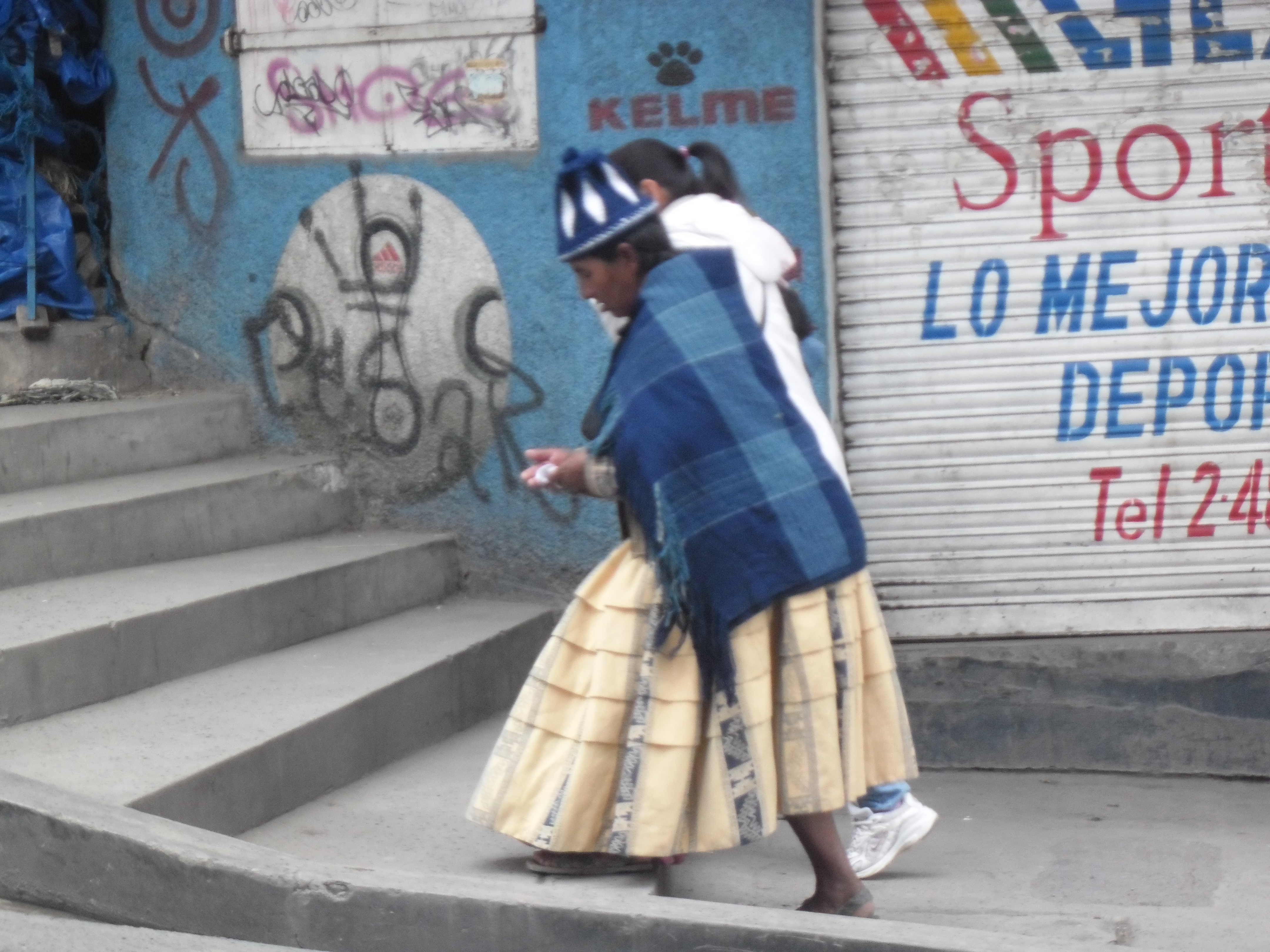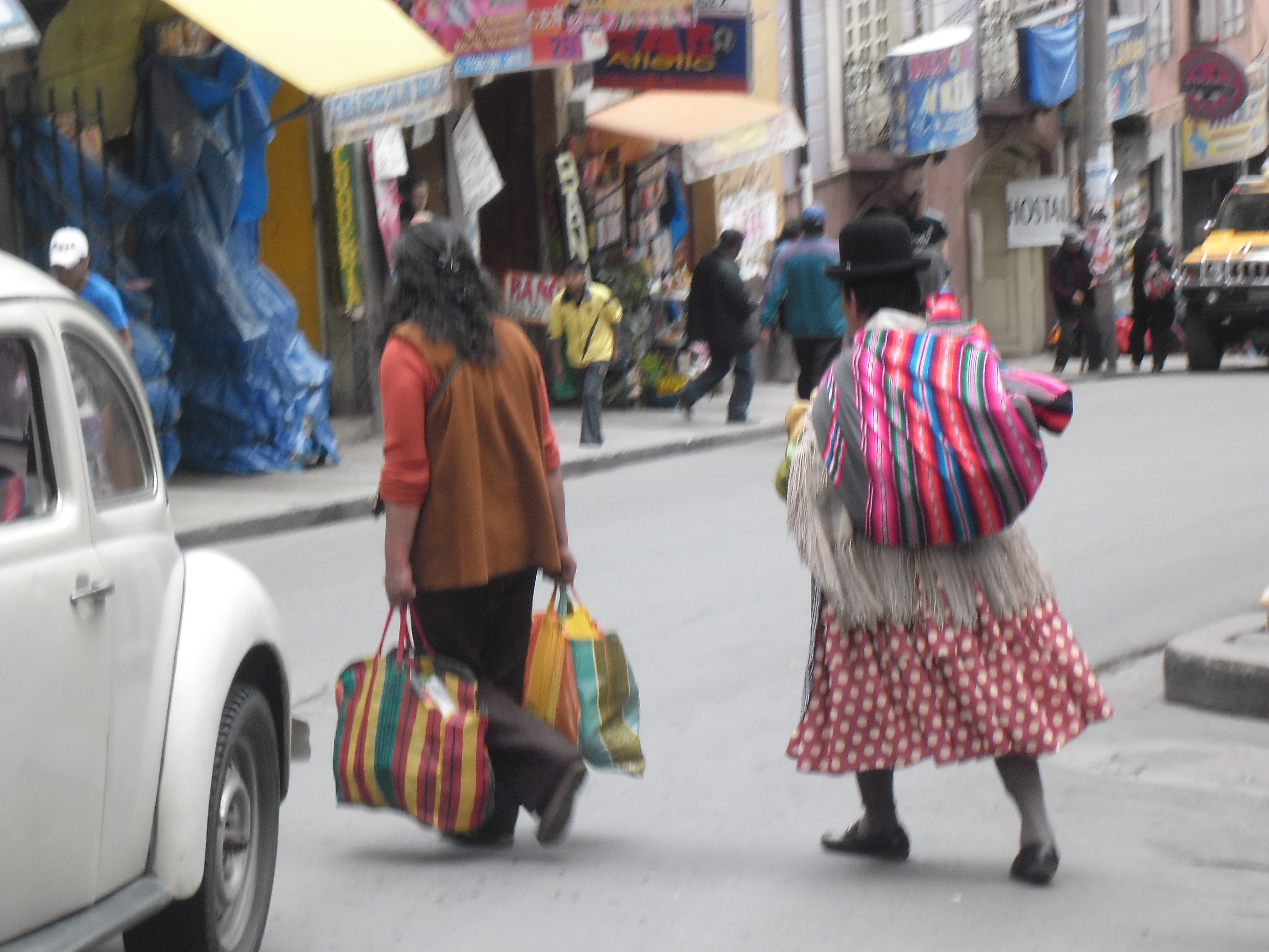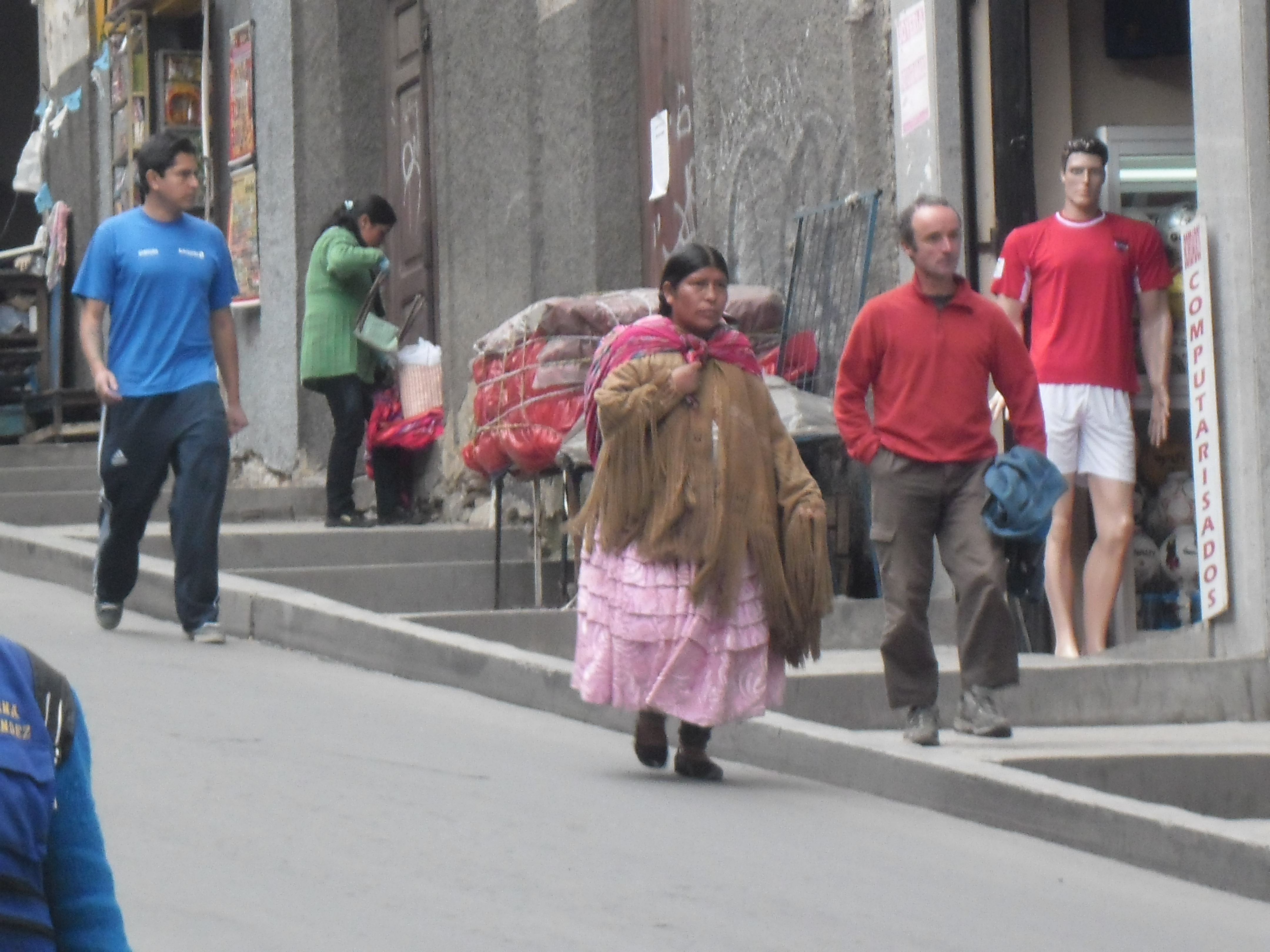 SAM_0810SAM_0805SAM_0806The cholitas are the women who wear the beautiful traditional skirts called cholas. It is just their everyday clothing, although it looks like they’re all dressed up for a special occasion. They often carry extremely heavy bundles on their back, using a weaving to wrap it up. Sometimes they’re shoveling dirt, or cooking potatoes, always at their own pace and very gracefully.