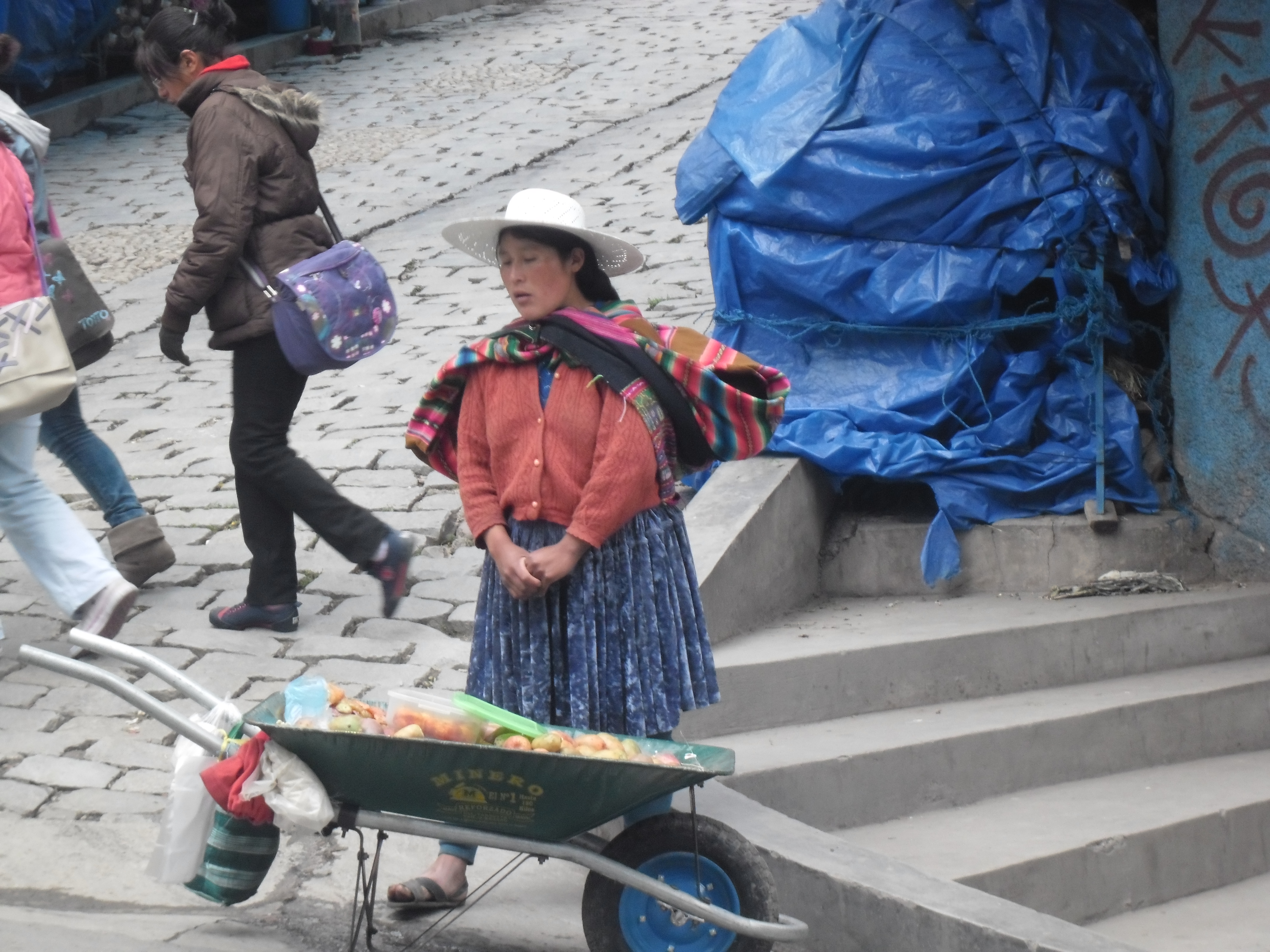 La Paz is a city of up and down. Very steep streets, with old Dodge or Chevy or Blue Bird buses defying laws of gravity and transmission physics. SAM_0797SAM_0808SAM_0795SAM_0796SAM_0794SAM_0807SAM_0812Wheelbarrows are everywhere. People use them to carry things up and down the hills, or to set up mobile stands to sell fruit or whatever they have. I don’t know if it’s easier to push them up the hills or to slow them down when they’re going downward.