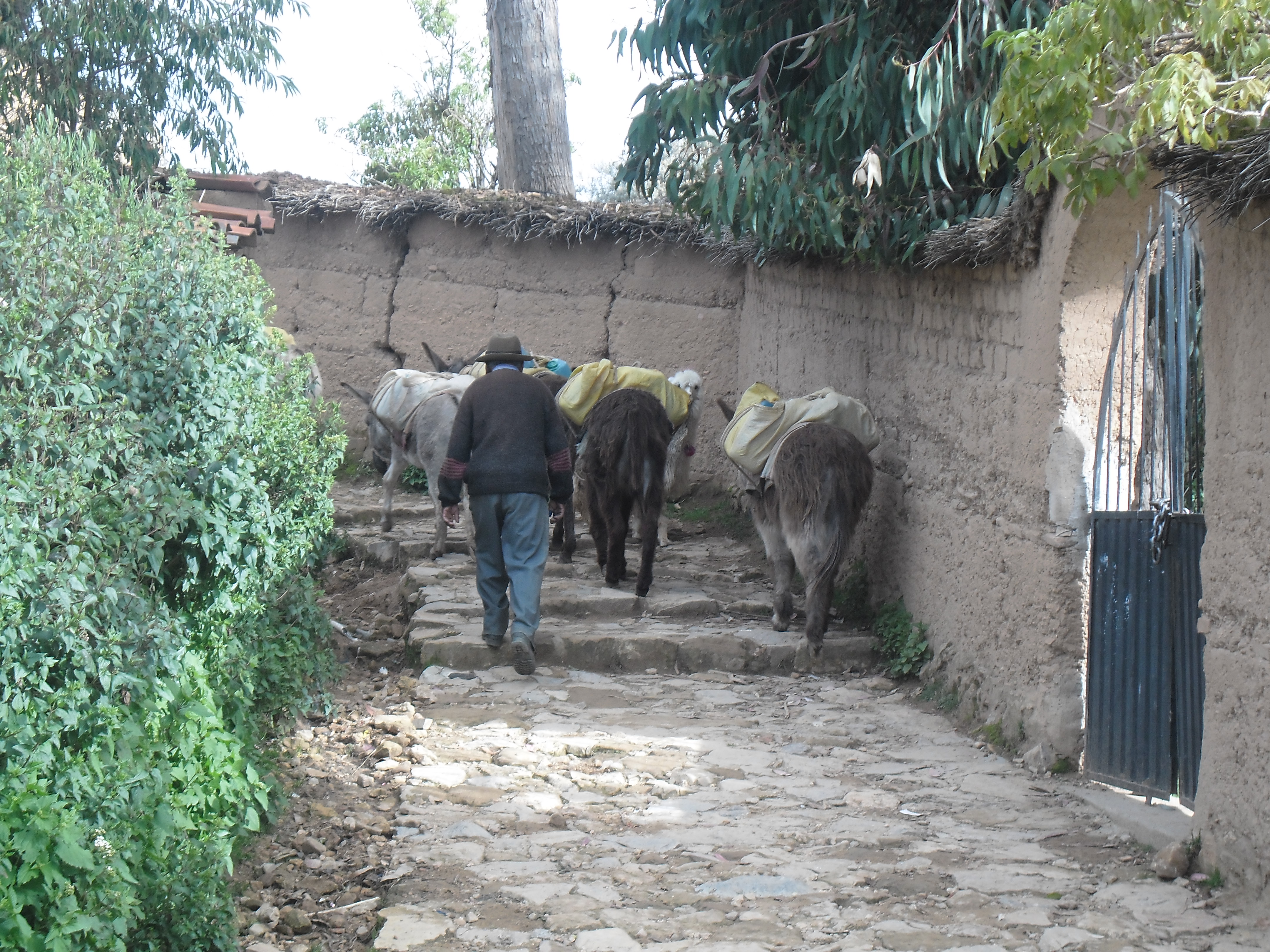 We spent just a few days in Potosí, adjusting to the altitude and dodging water balloons. Thanks to Mike´s investigation, we learned that the tingling in our hands and shortness of breath were side effects of the prescription we were taking to prevent altitude sickness! Stopping the med relieved much of the symptoms, but we still walk slowly. All our time in the Bolivian altoplano has meant climbing up, up, up, and down, down down – in city streets and terraced hillsides.